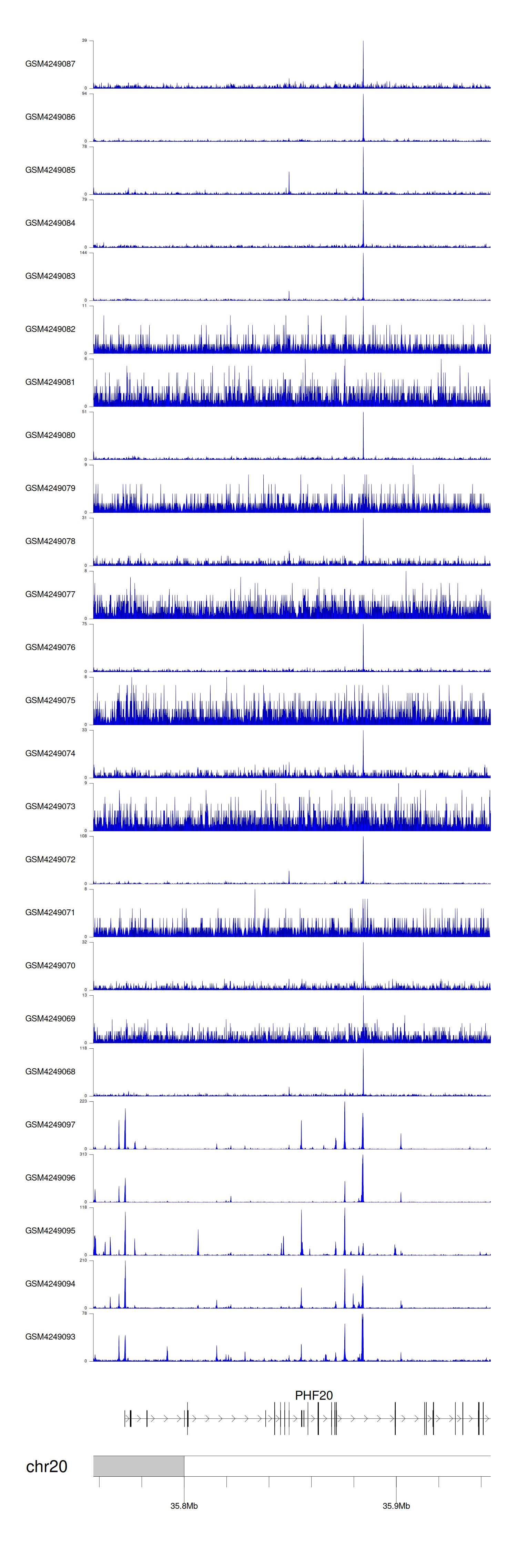 > Dataset: GSE143026 - PHF20 peak across samples