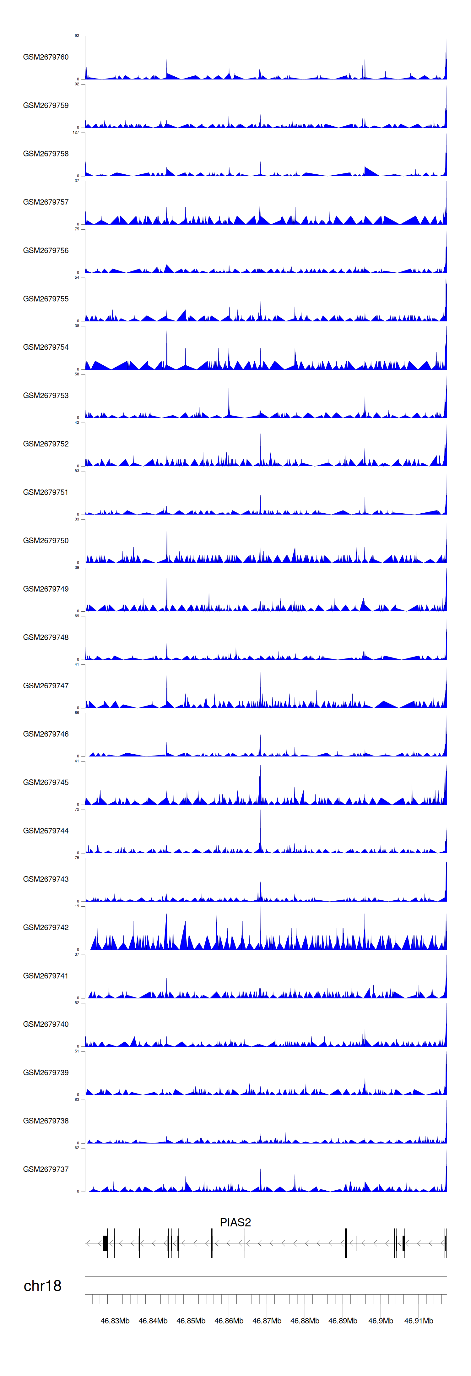 > Dataset: GSE100376 - PIAS2 peak across samples
