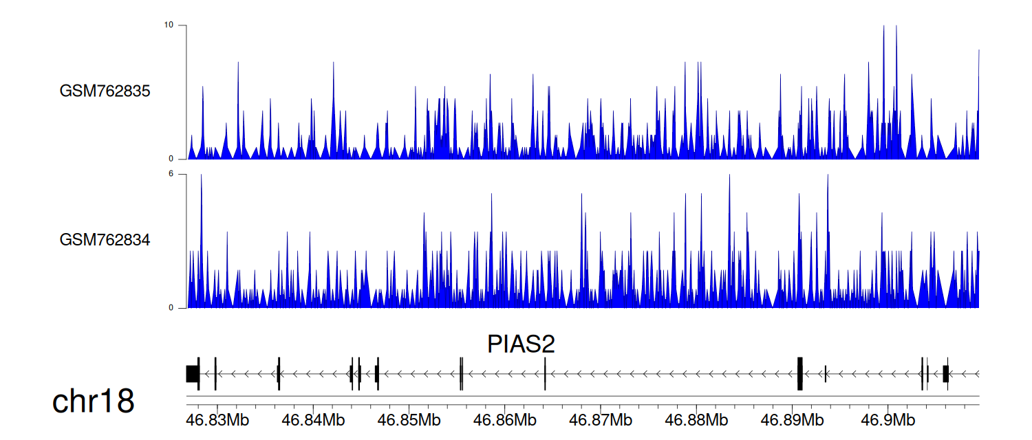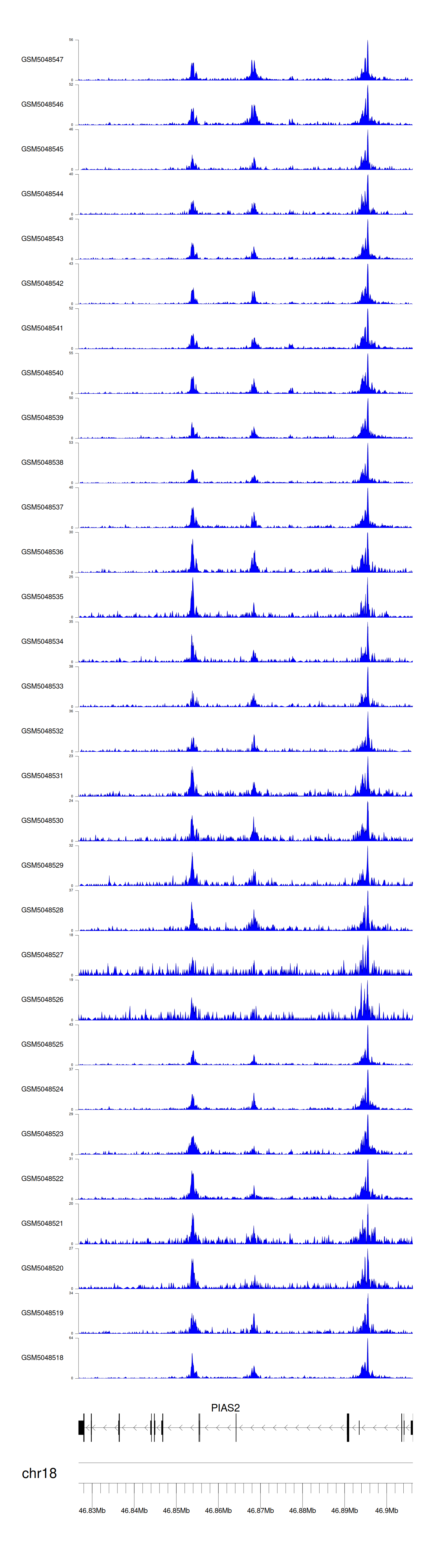 > Dataset: GSE30738 - PIAS2 peak across samples