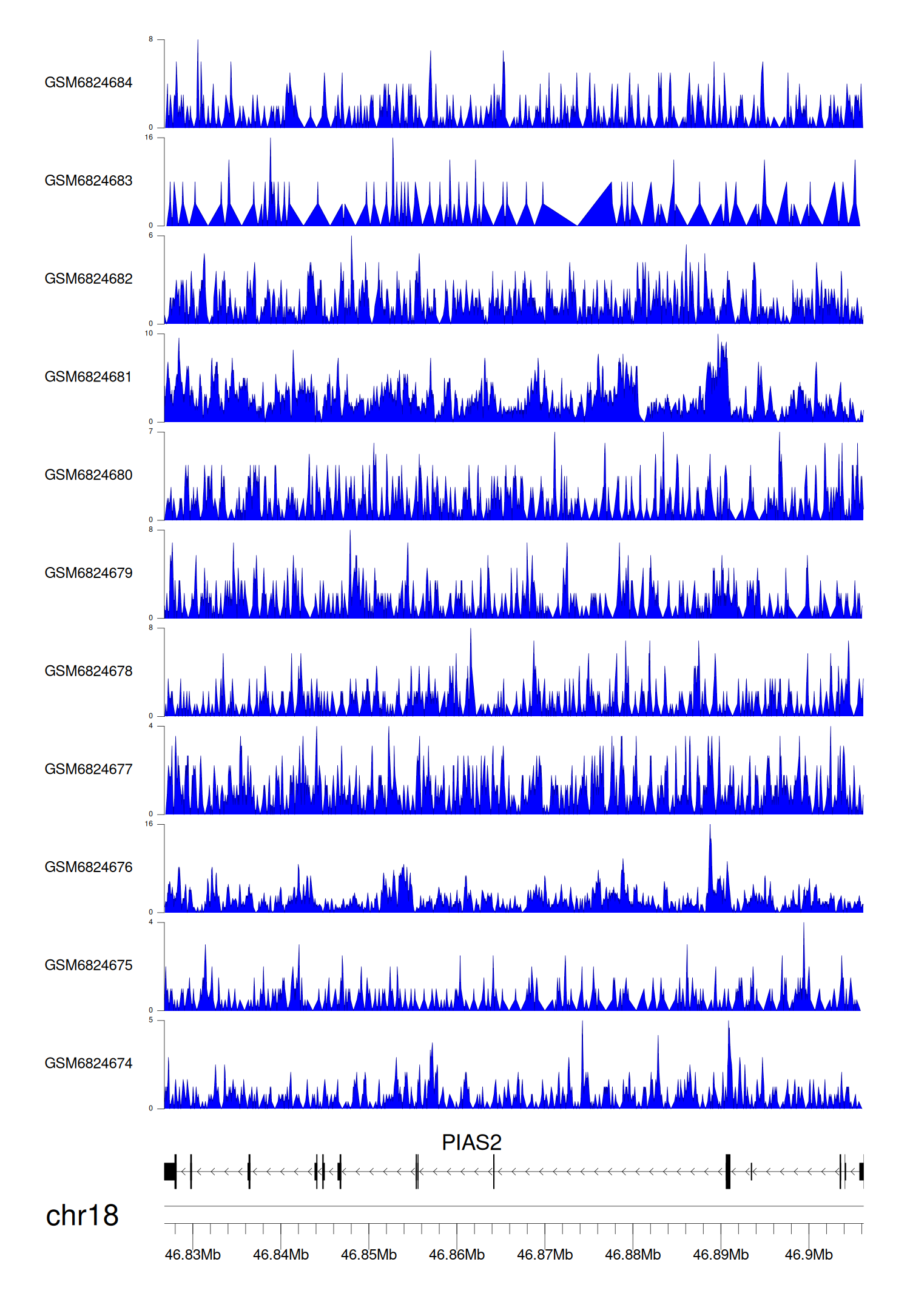 > Dataset: GSE165703 - PIAS2 peak across samples