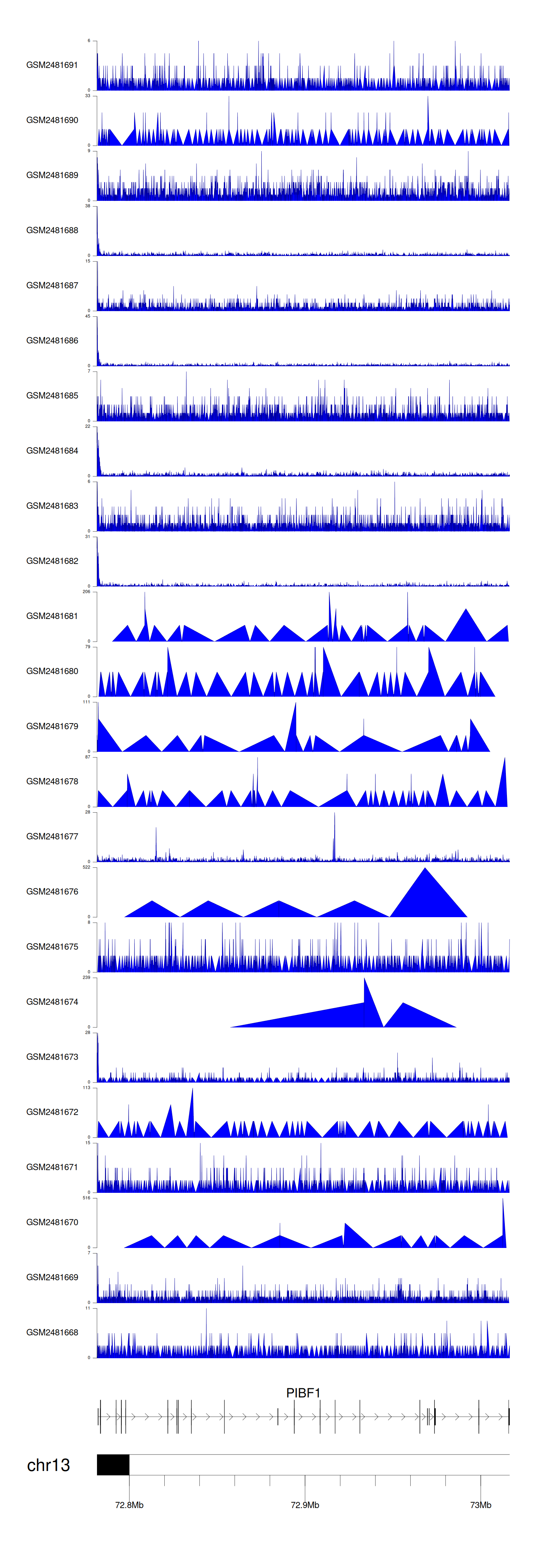 > Dataset: GSE94732 - PIBF1 peak across samples