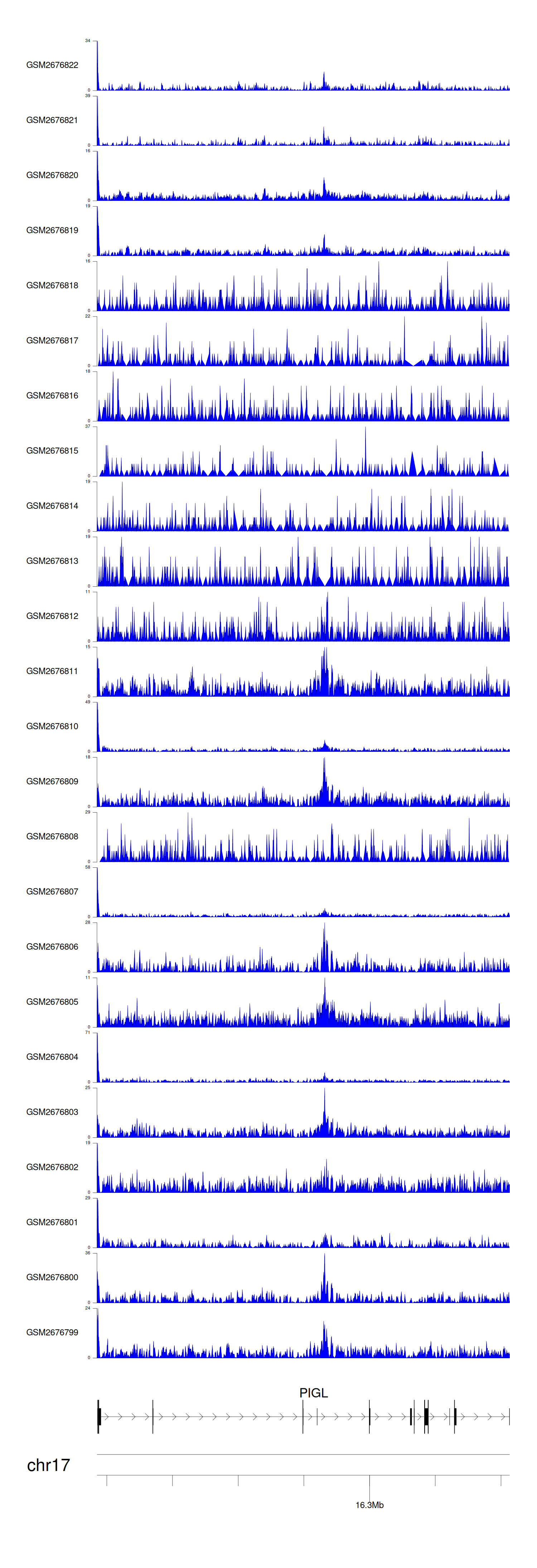> Dataset: GSE165703 - PIGL peak across samples