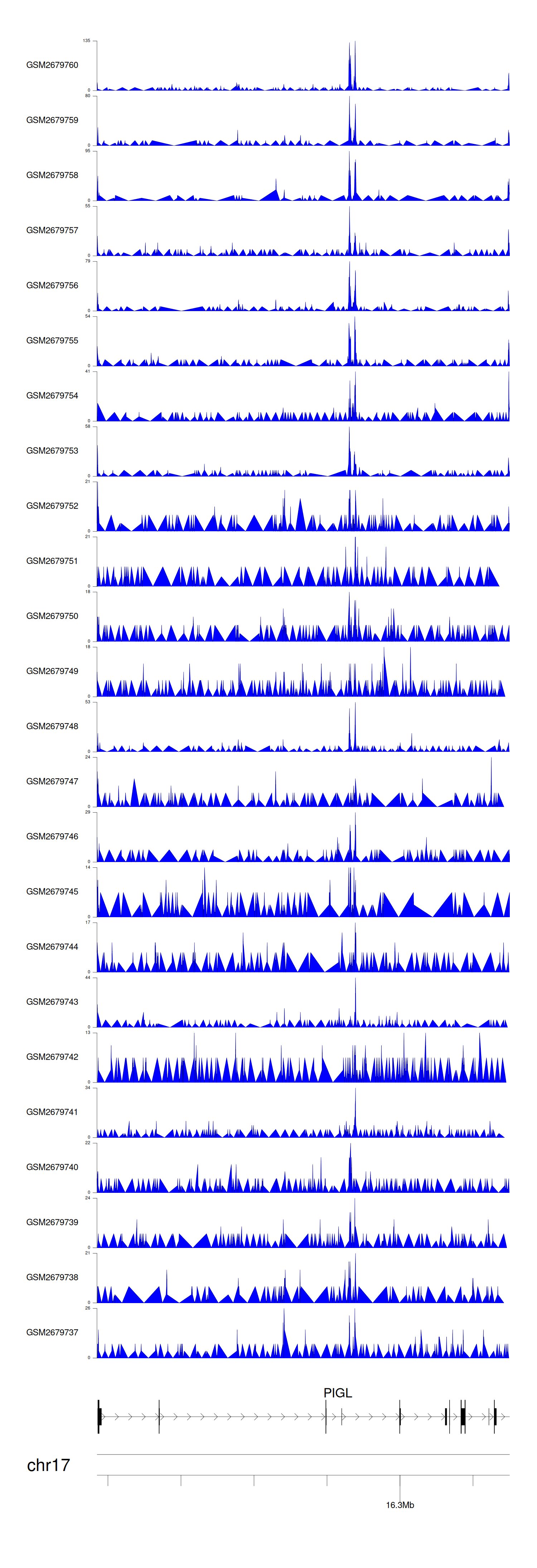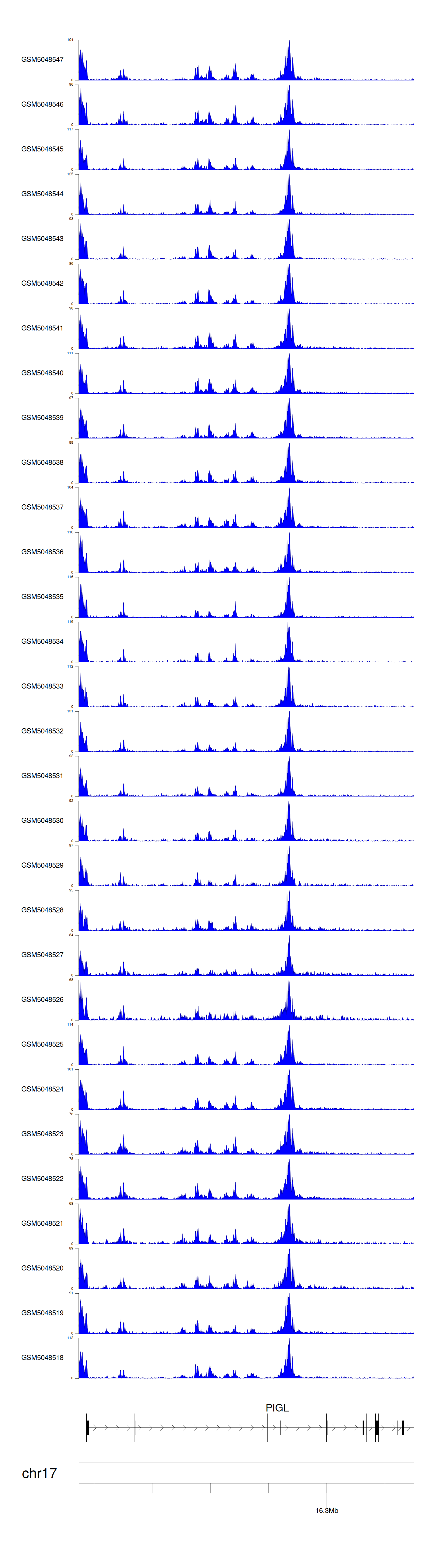 > Dataset: GSE100376 - PIGL peak across samples