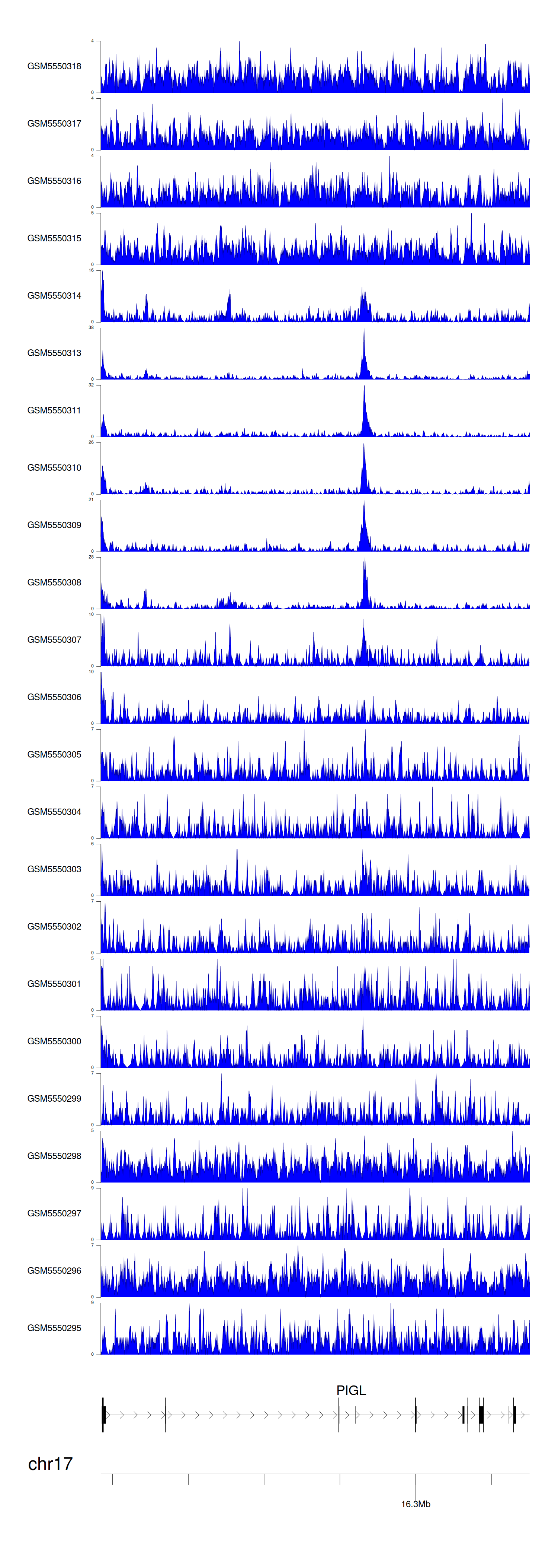 > Dataset: GSE143026 - PIGL peak across samples