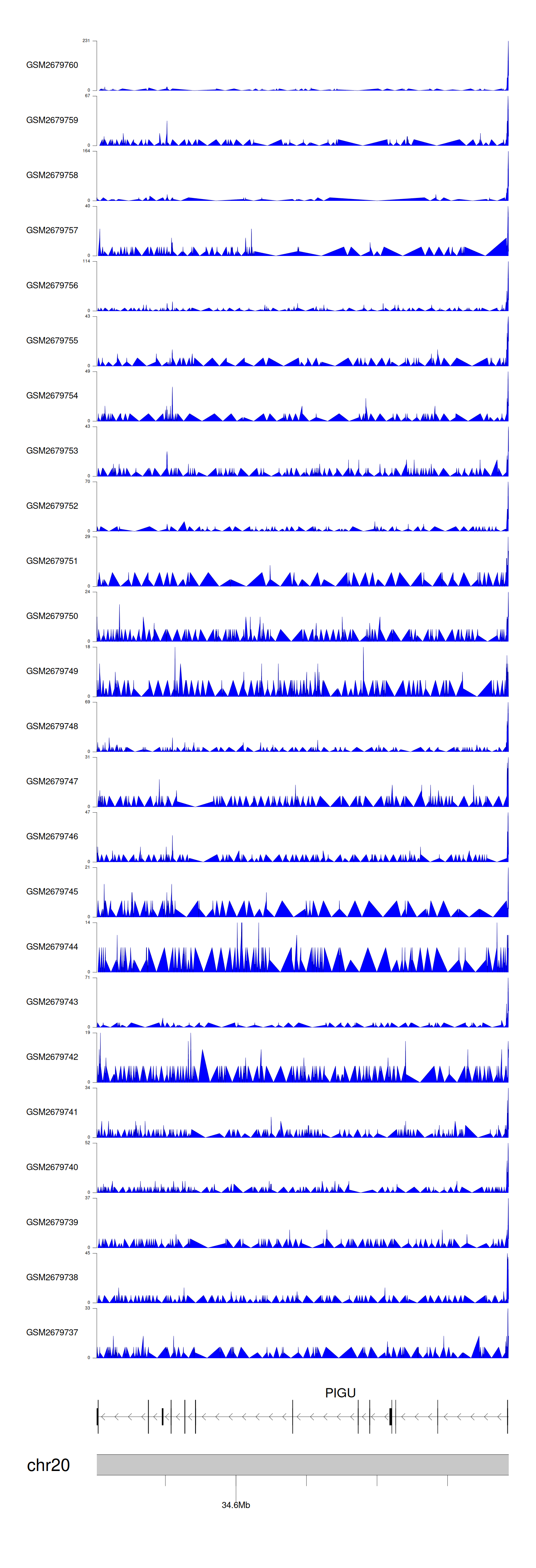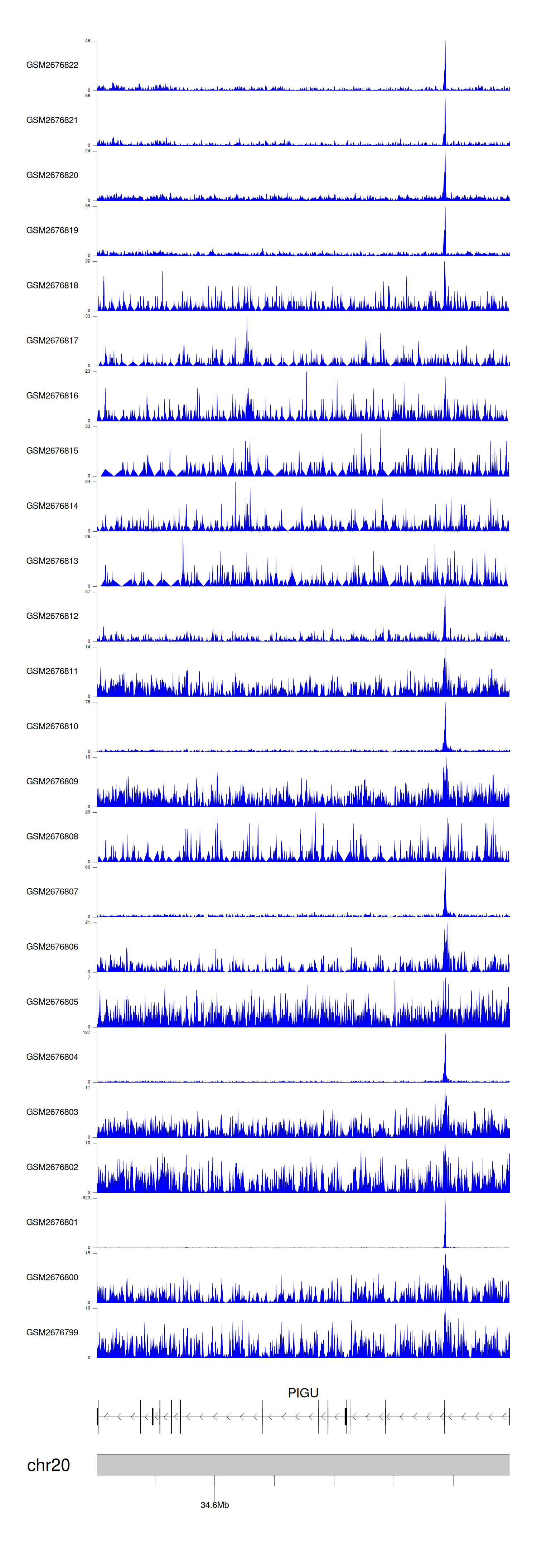 > Dataset: GSE100376 - PIGU peak across samples