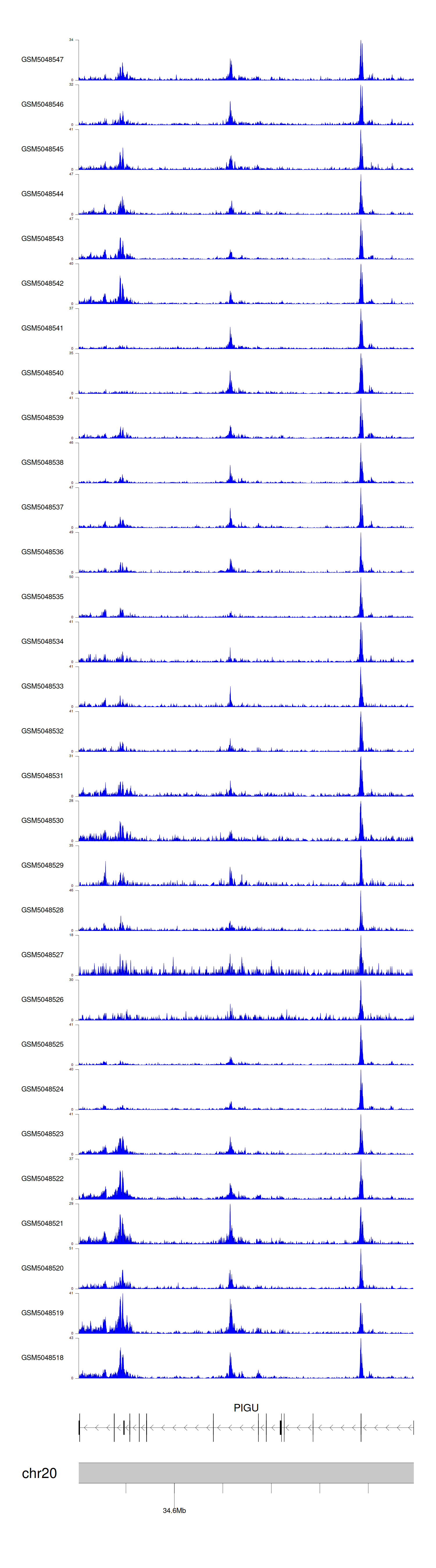 > Dataset: GSE30738 - PIGU peak across samples