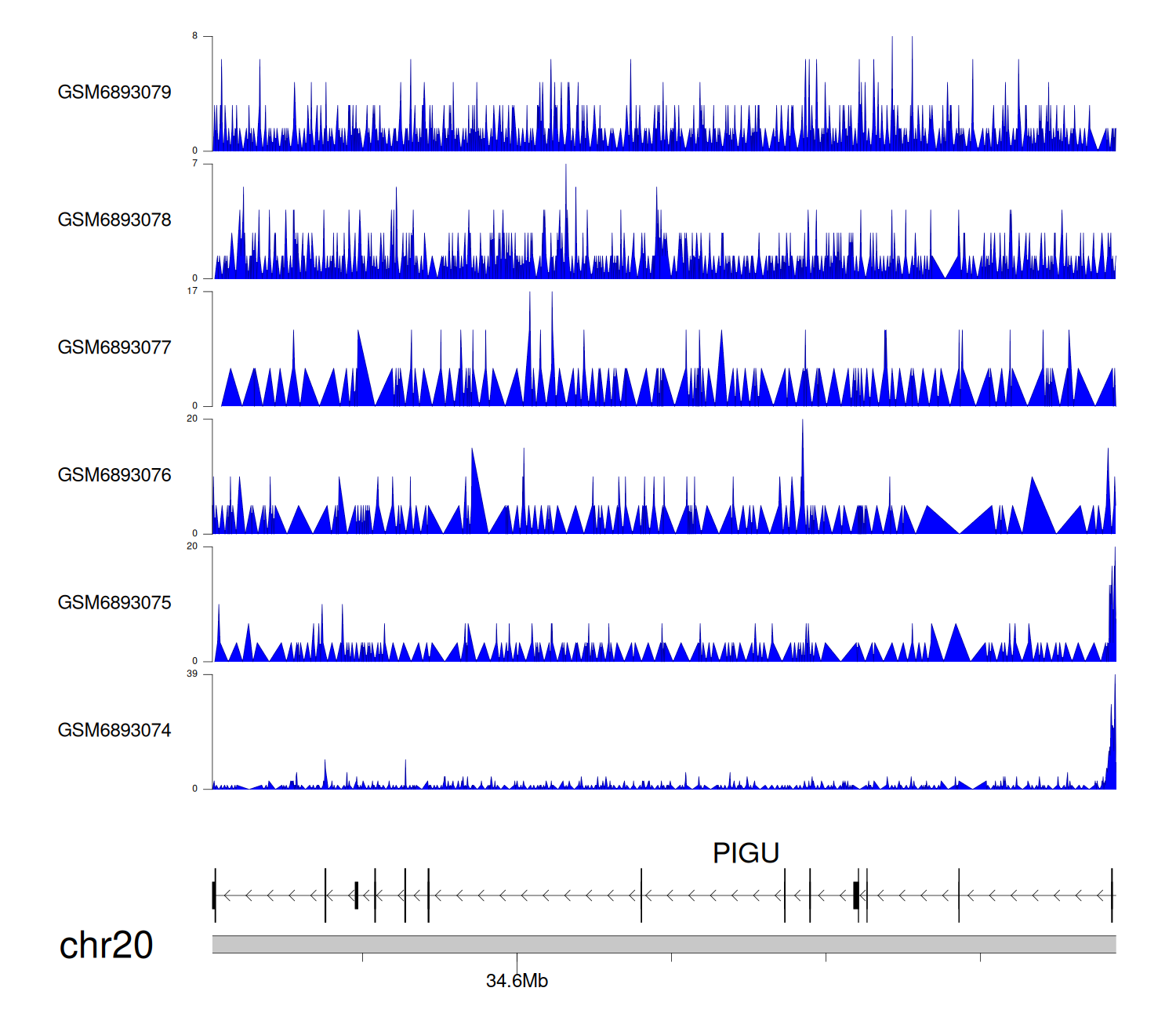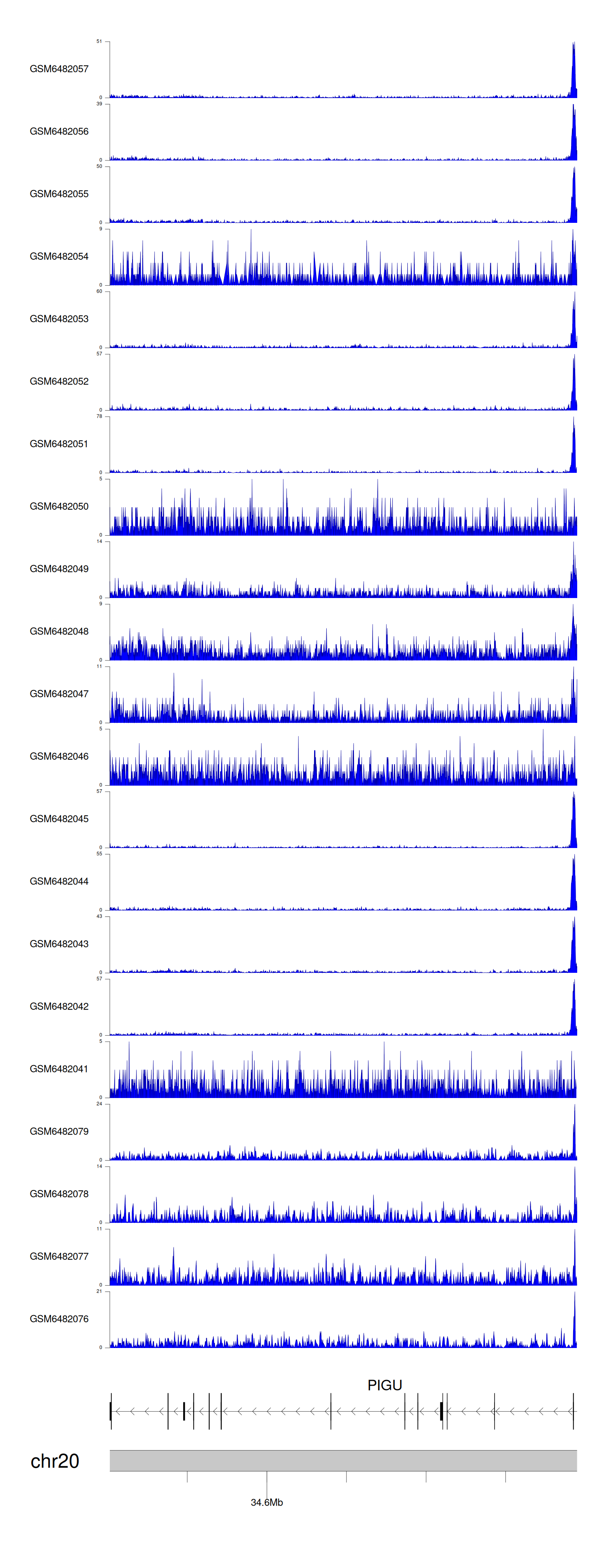 > Dataset: GSE165703 - PIGU peak across samples