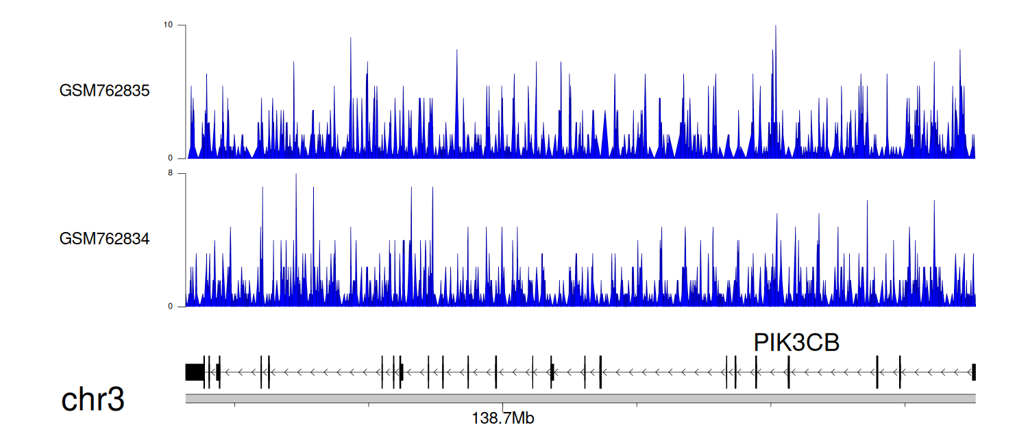 > Dataset: GSE30738 - PIK3CB peak across samples