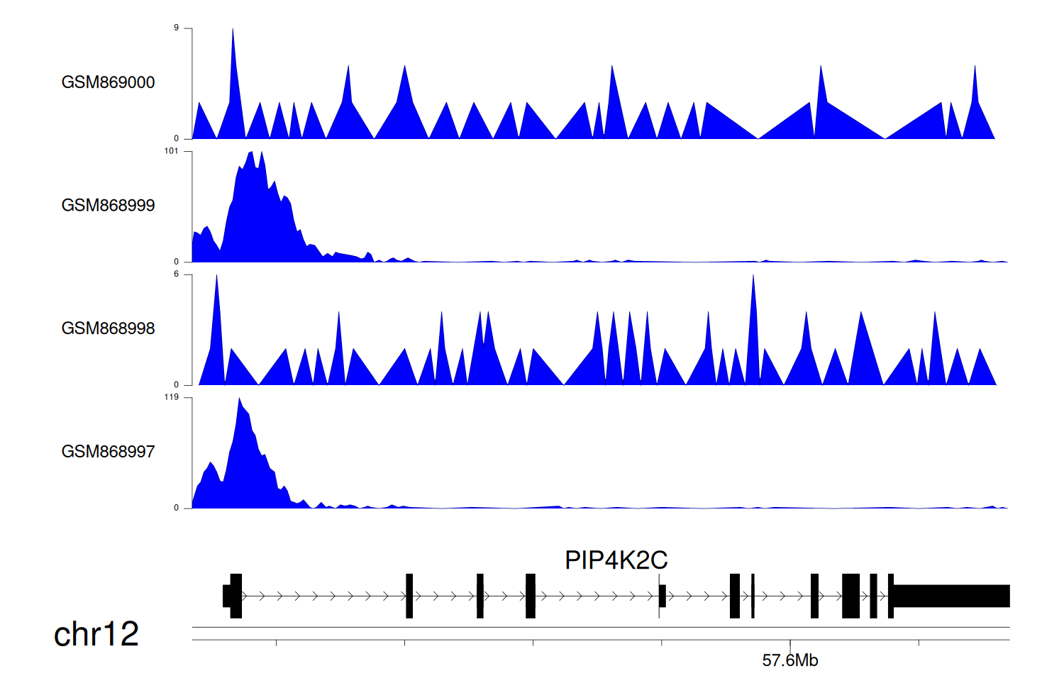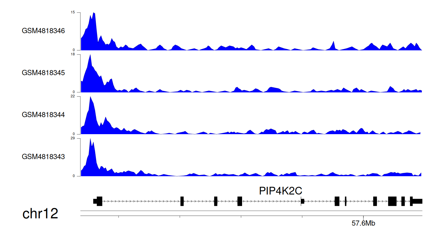 > Dataset: GSE131257 - PIP4K2C peak across samples