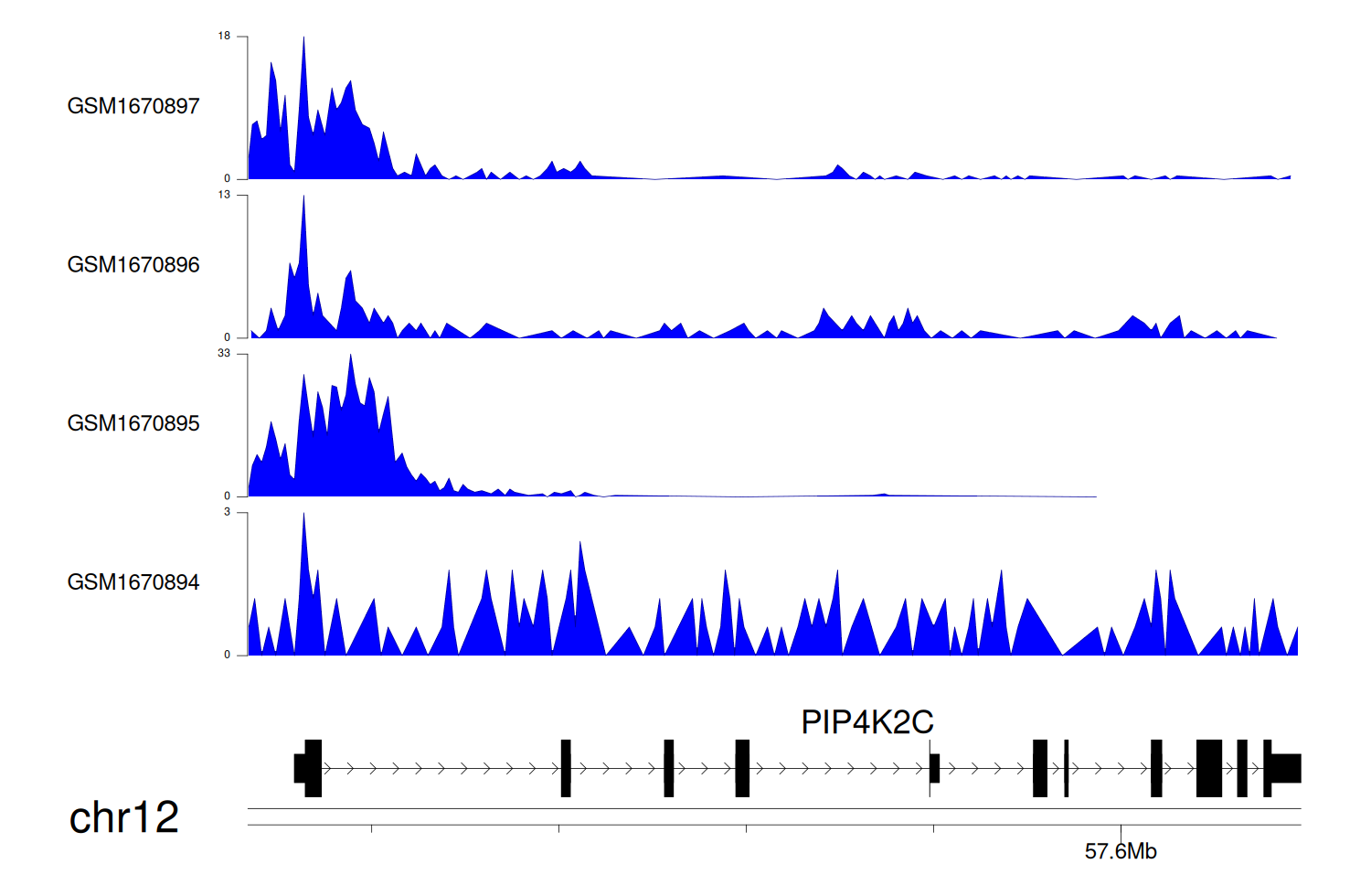 > Dataset: GSE35465 - PIP4K2C peak across samples