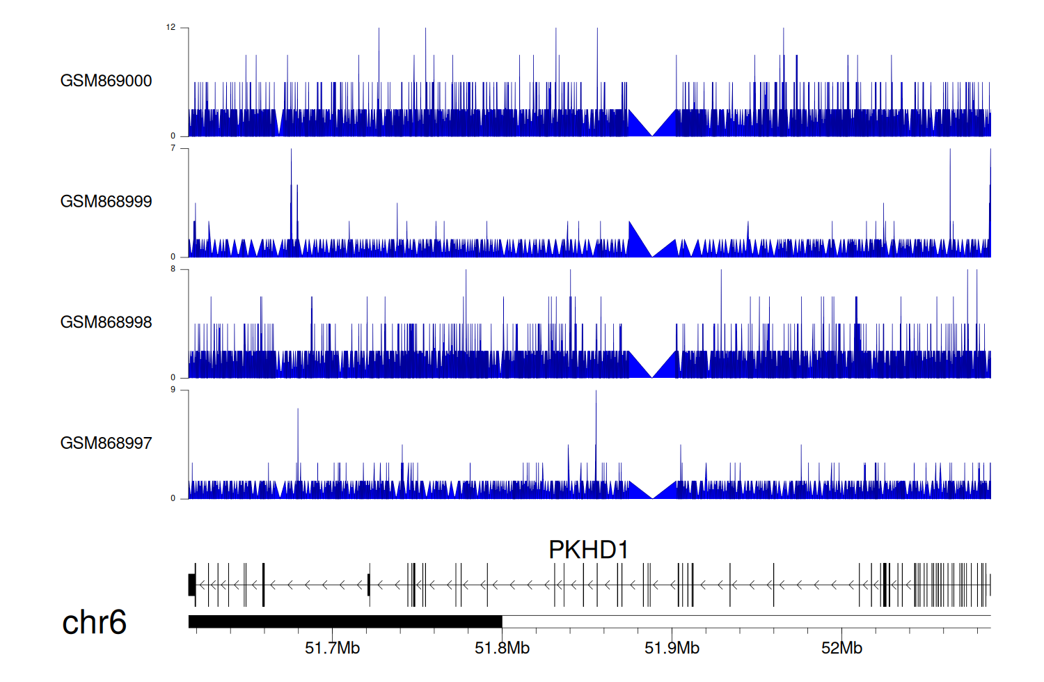 > Dataset: GSE68402 - PKHD1 peak across samples