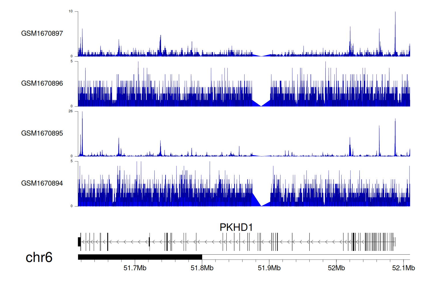 > Dataset: GSE100400 - PKHD1 peak across samples