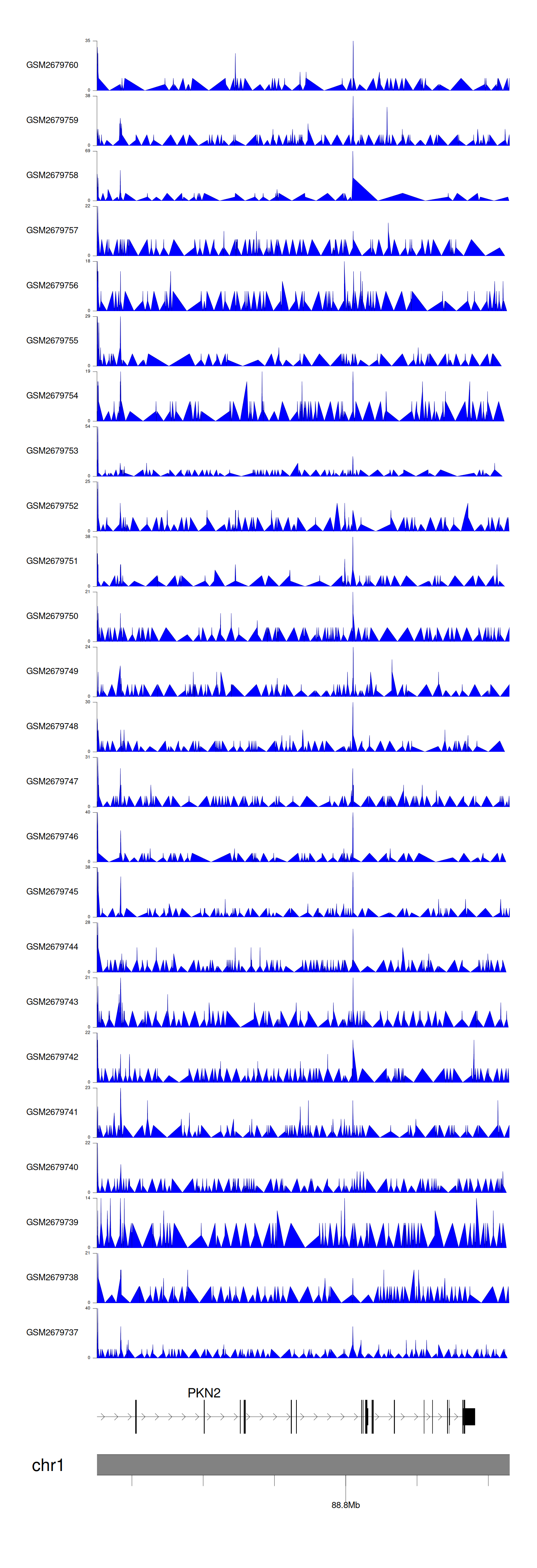 > Dataset: GSE30738 - PKN2 peak across samples