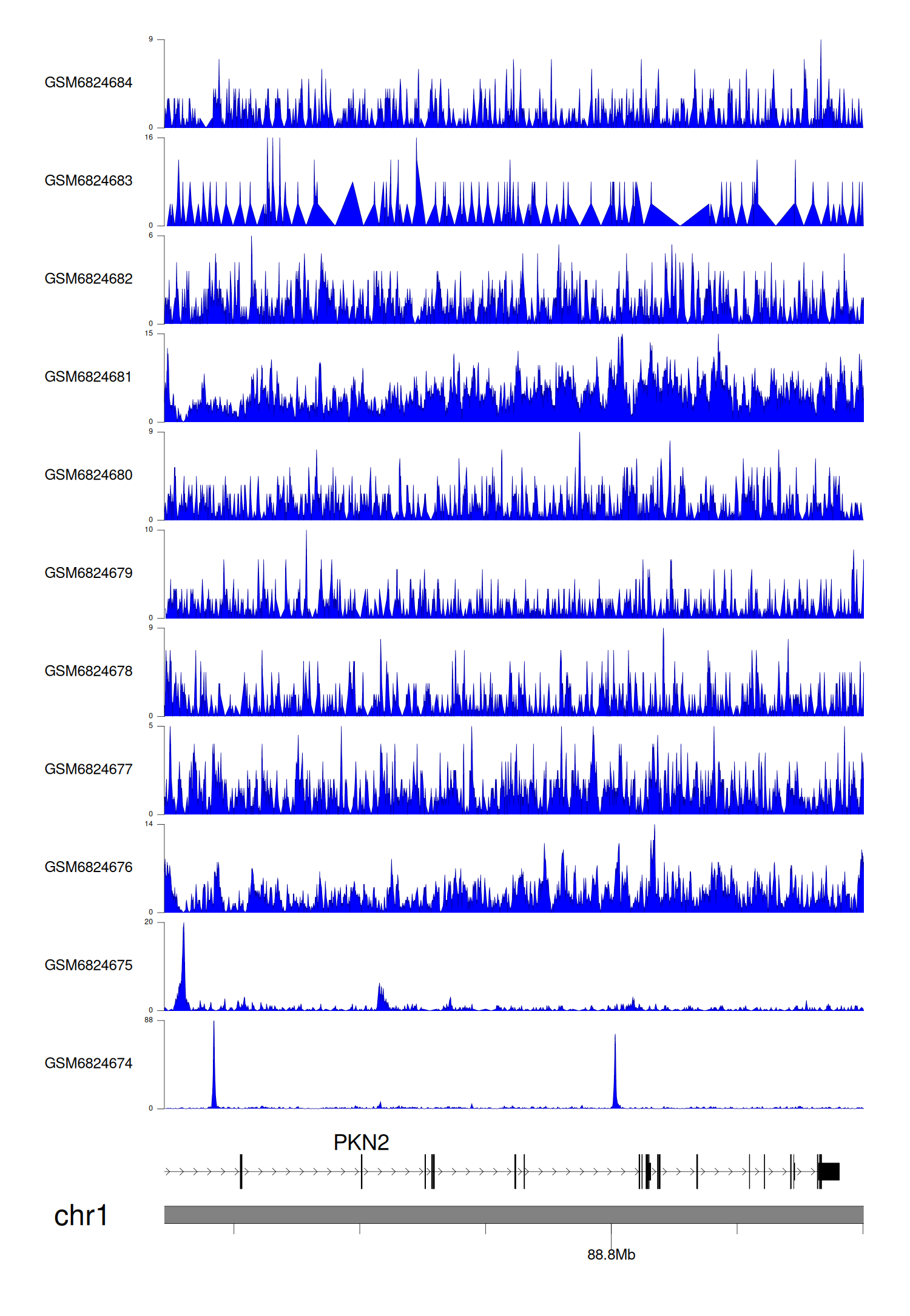 > Dataset: GSE211651 - PKN2 peak across samples