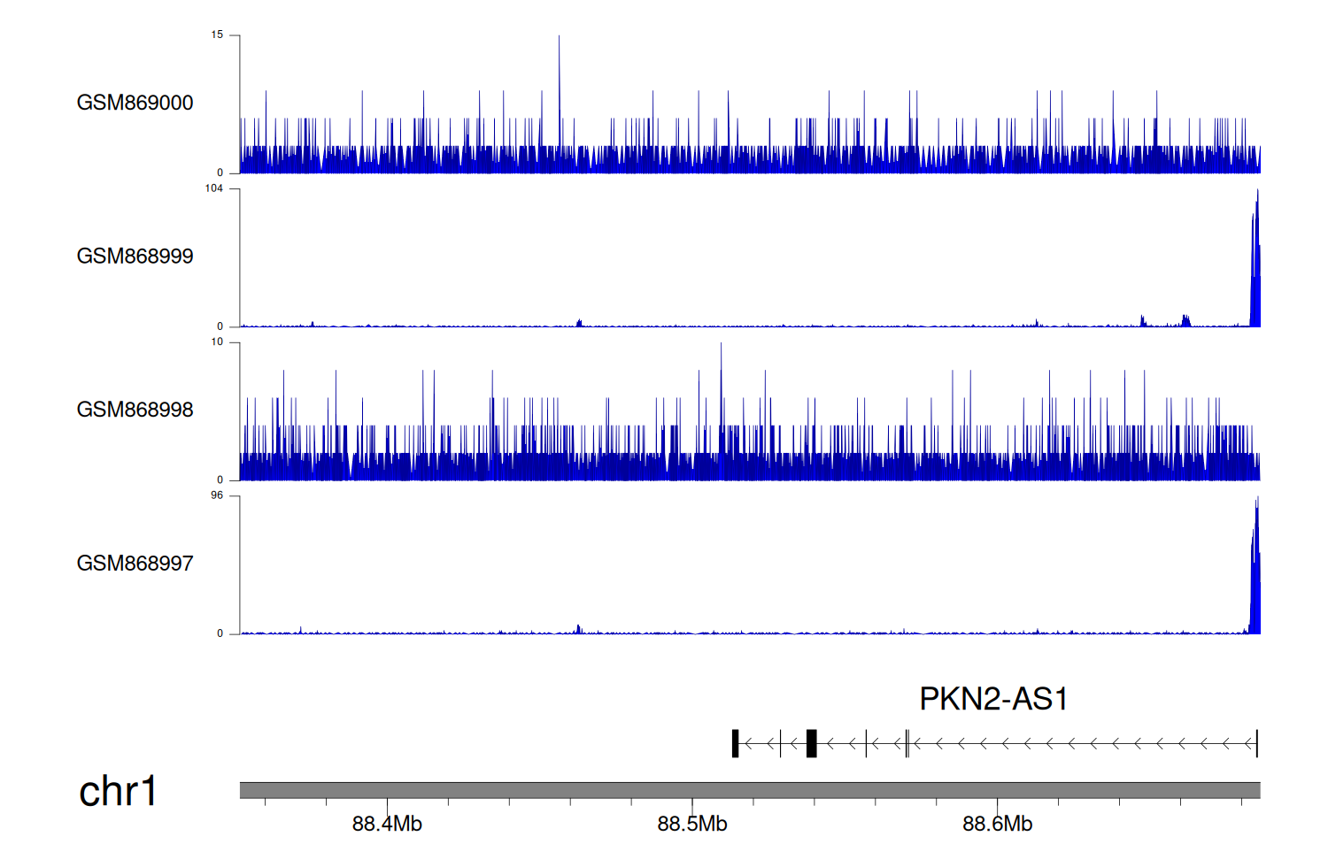 > Dataset: GSE68402 - PKN2-AS1 peak across samples