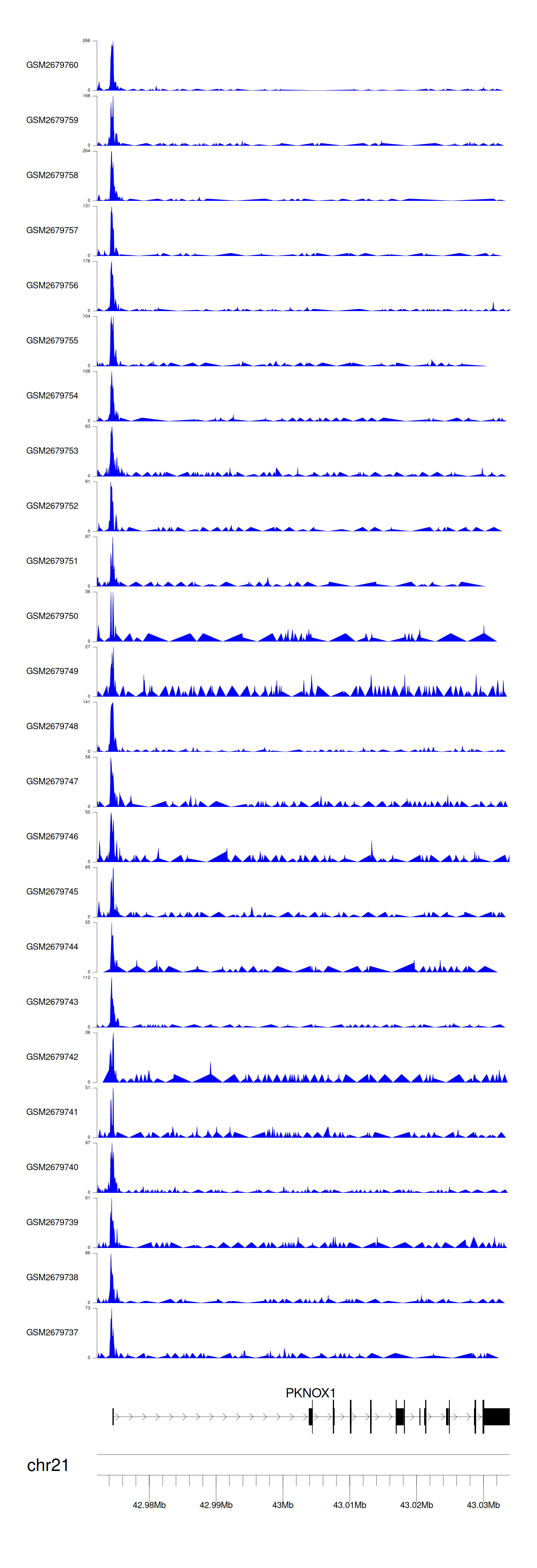 > Dataset: GSE100376 - PKNOX1 peak across samples