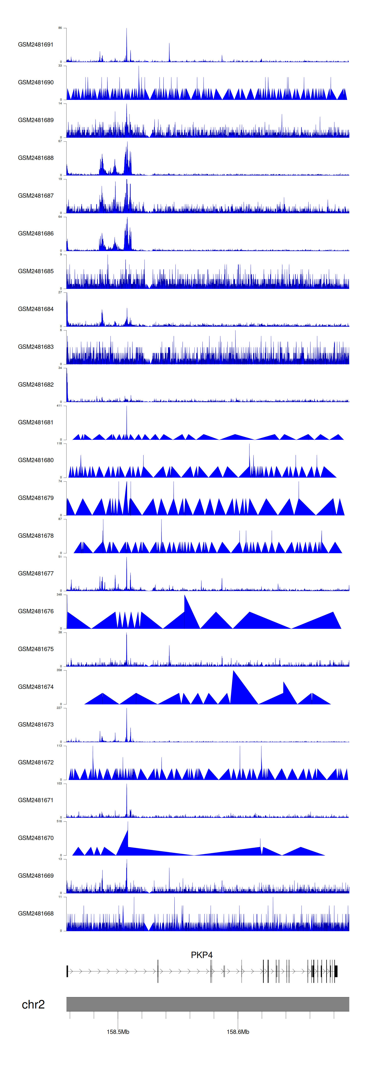 Armadillo-like proteins are characterized by a series of armadillo repeats, first defined in the Drosophila 'armadillo' gene product, that are typically 42 to 45 amino acids in length. These proteins can be divided into subfamilies based on their number of repeats, their overall sequence similarity, and the dispersion of the repeats throughout their sequences. Members of the p120(ctn)/plakophilin subfamily of Armadillo-like proteins, including CTNND1, CTNND2, PKP1, PKP2, PKP4, and ARVCF. PKP4 may be a component of desmosomal plaque and other adhesion plaques and is thought to be involved in regulating junctional plaque organization and cadherin function. Multiple transcript variants encoding different isoforms have been found for this gene. [provided by RefSeq, Feb 2015] |