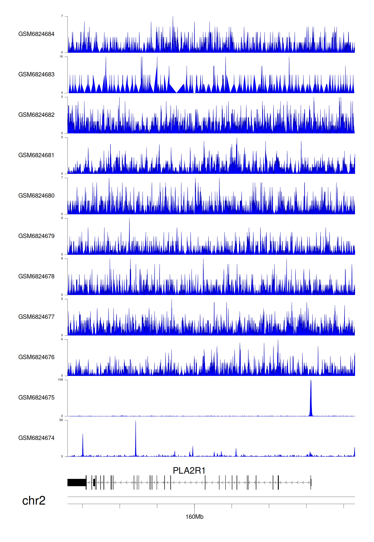 > Dataset: GSE165703 - PLA2R1 peak across samples