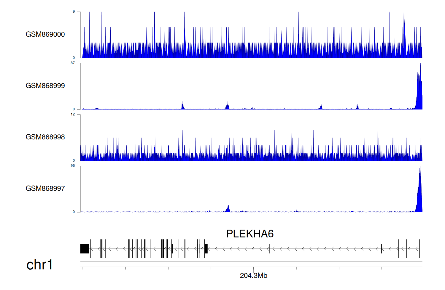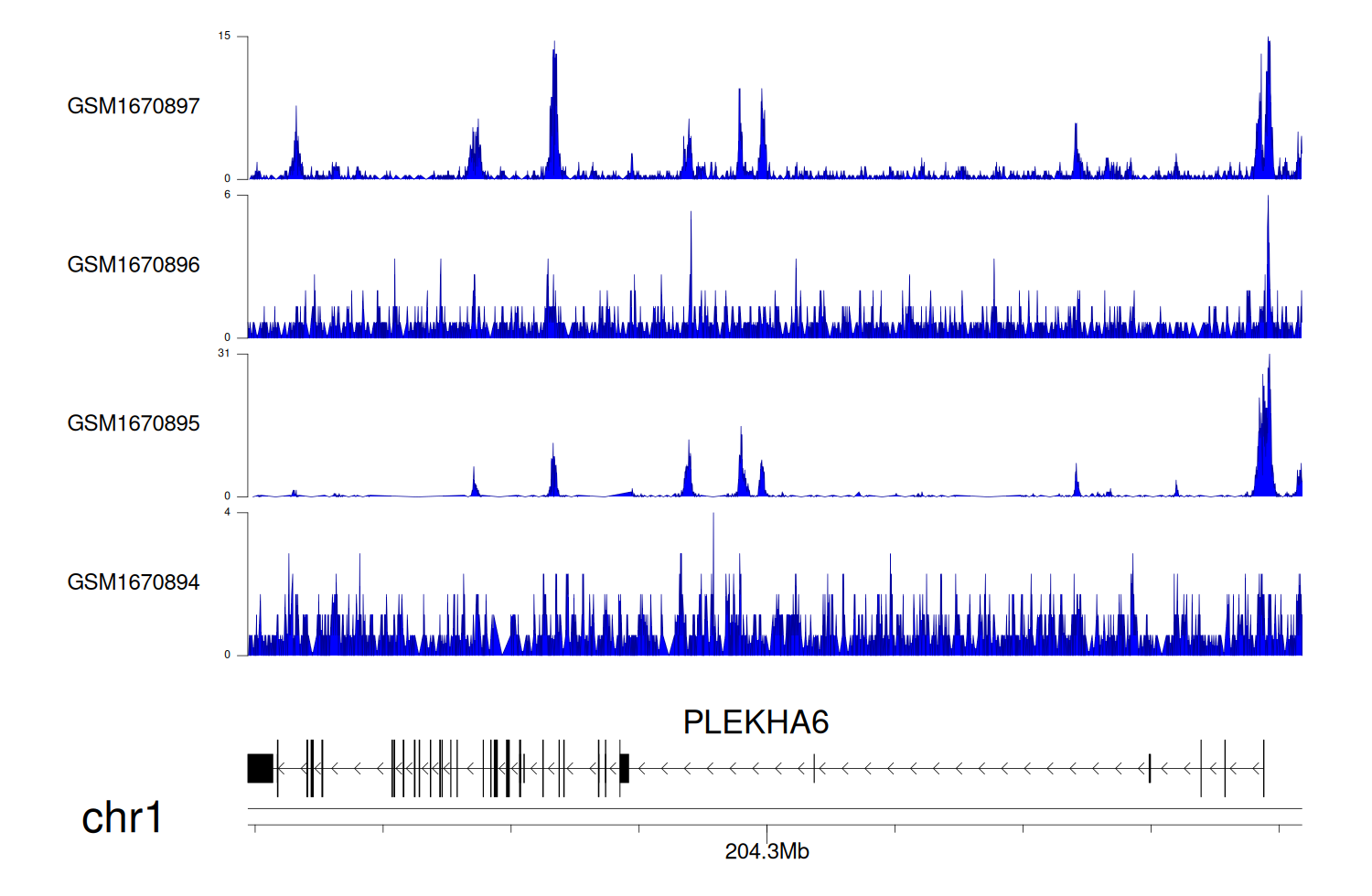 > Dataset: GSE68402 - PLEKHA6 peak across samples