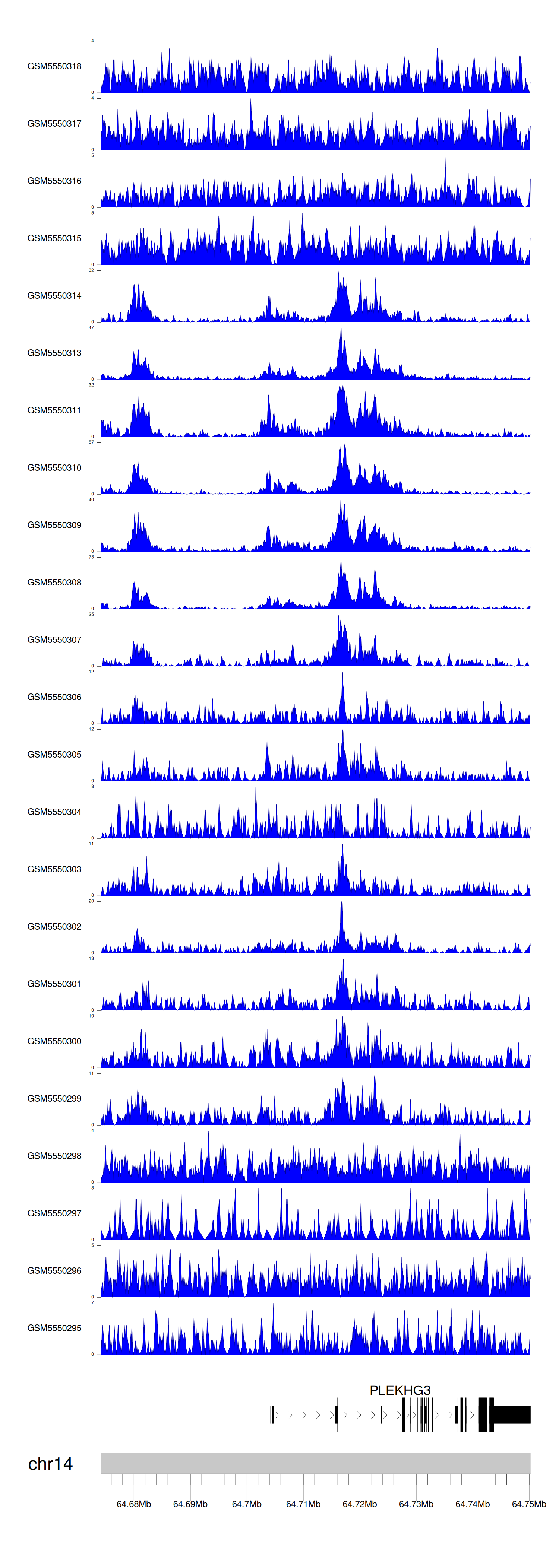 > Dataset: GSE143026 - PLEKHG3 peak across samples