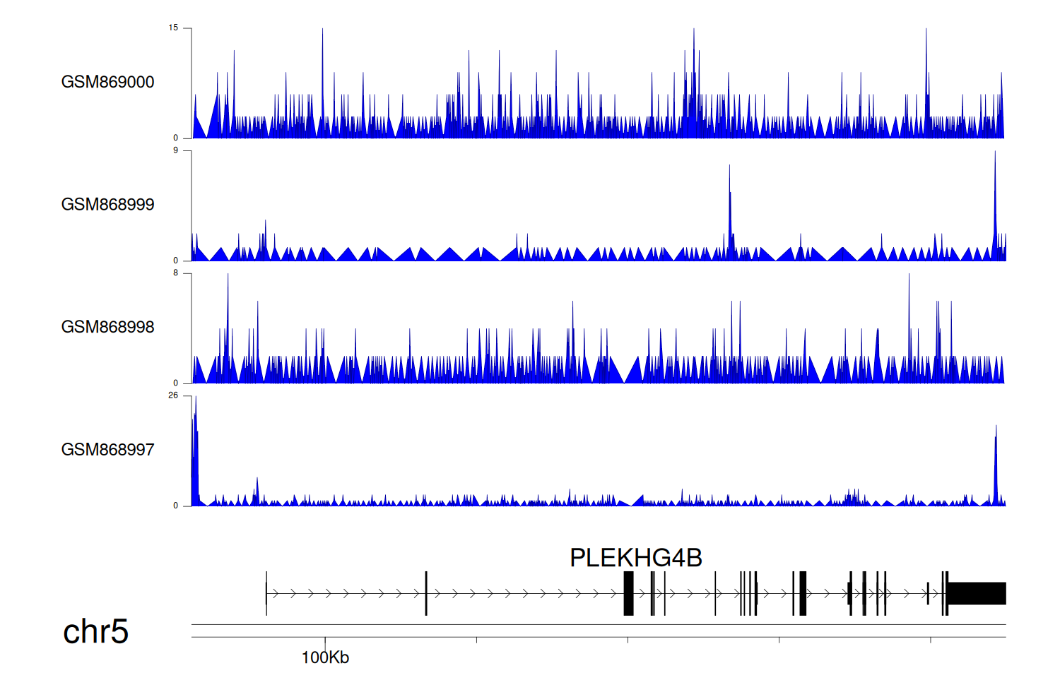 > Dataset: GSE68402 - PLEKHG4B peak across samples