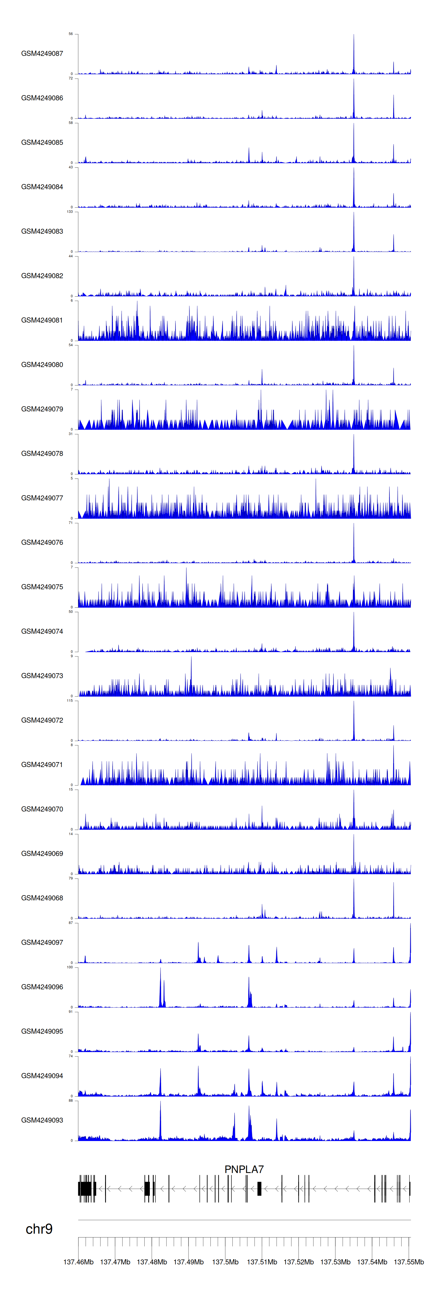 > Dataset: GSE143026 - PNPLA7 peak across samples