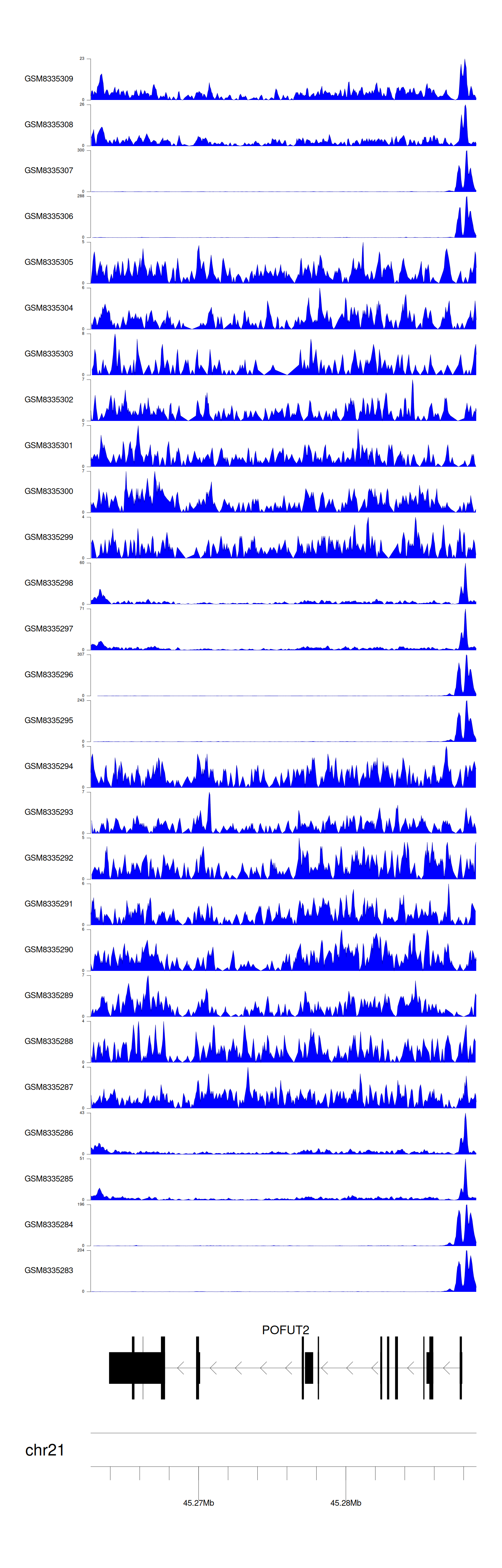 > Dataset: GSE270130 - POFUT2 peak across samples