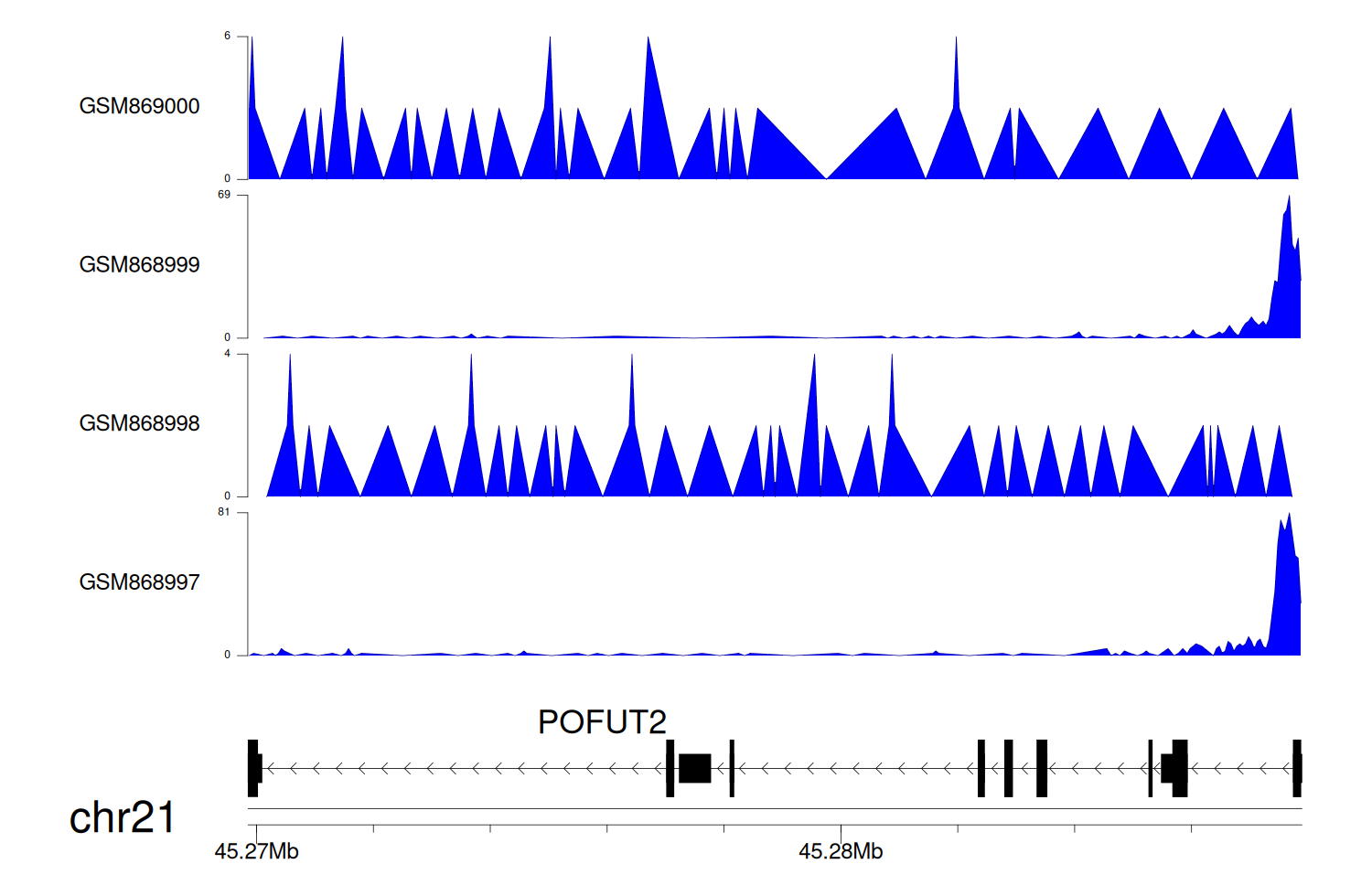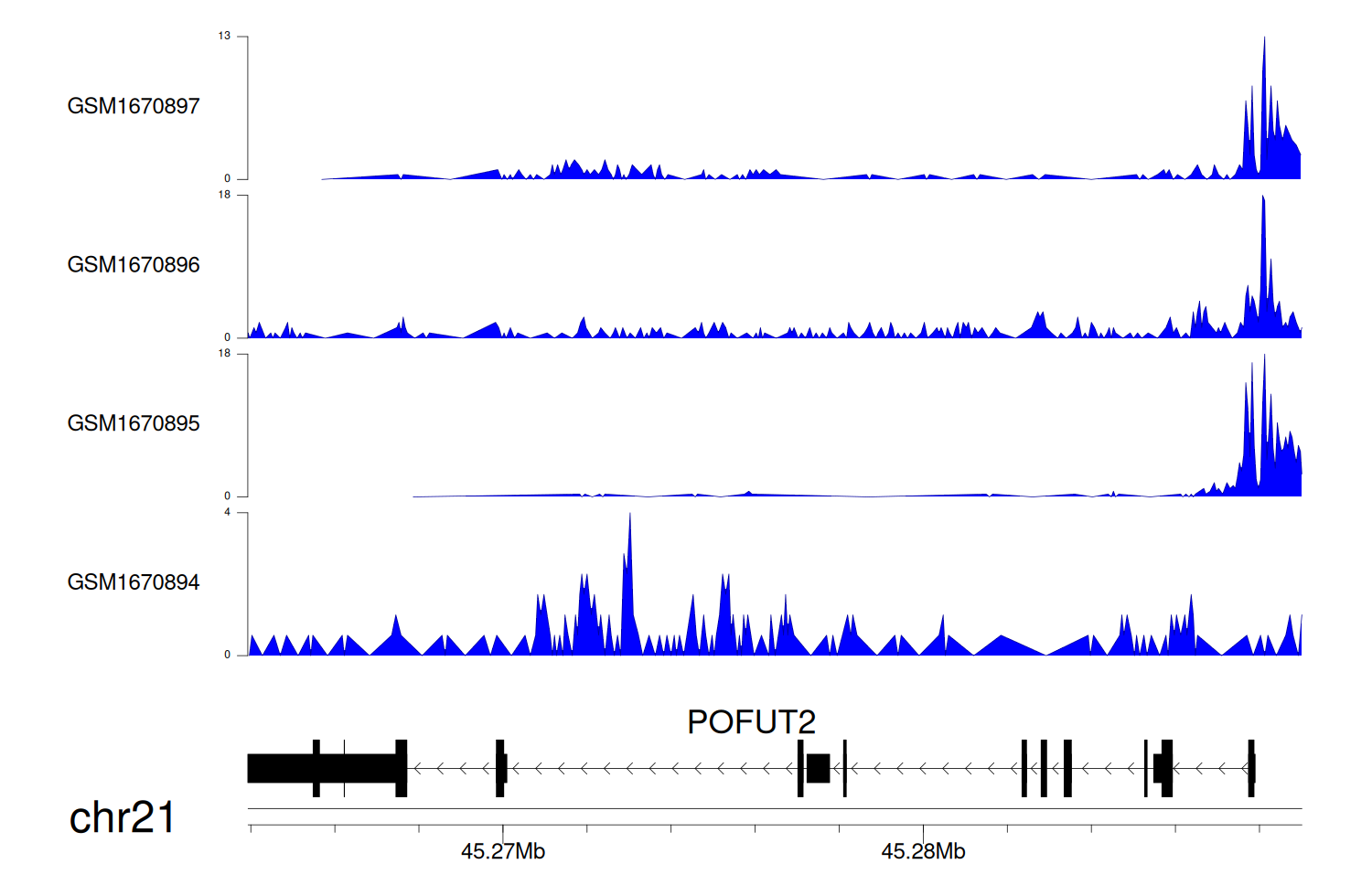 > Dataset: GSE68402 - POFUT2 peak across samples