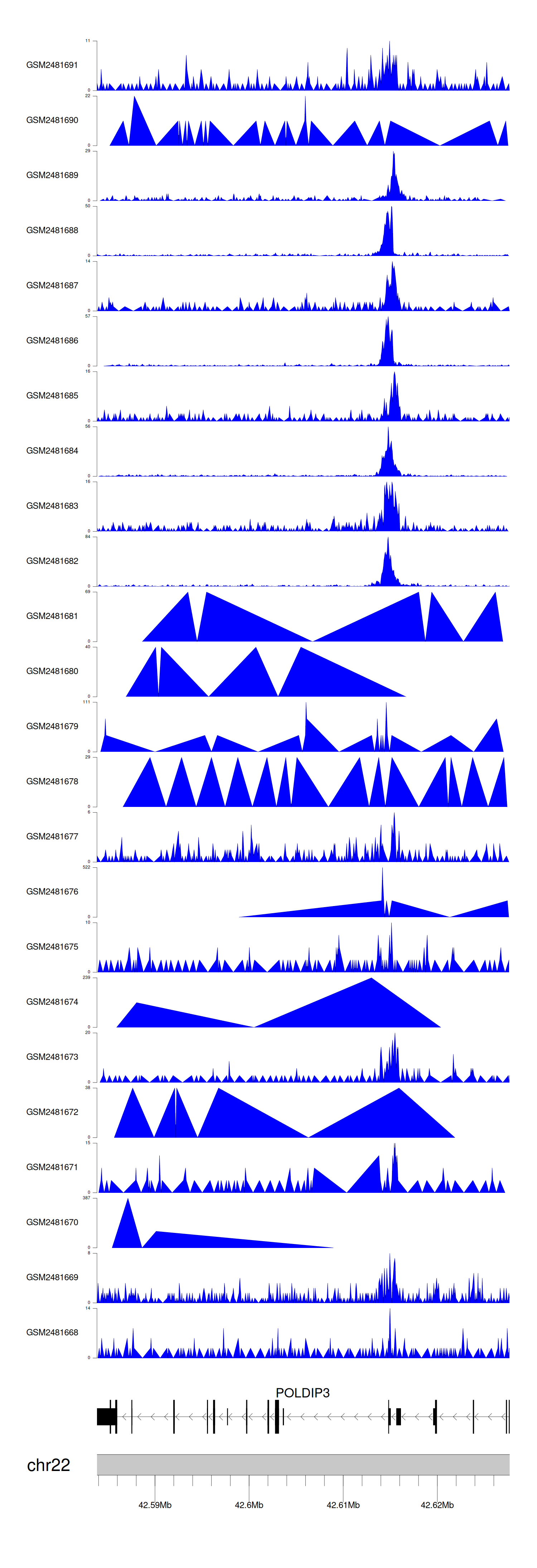 > Dataset: GSE94732 - POLDIP3 peak across samples