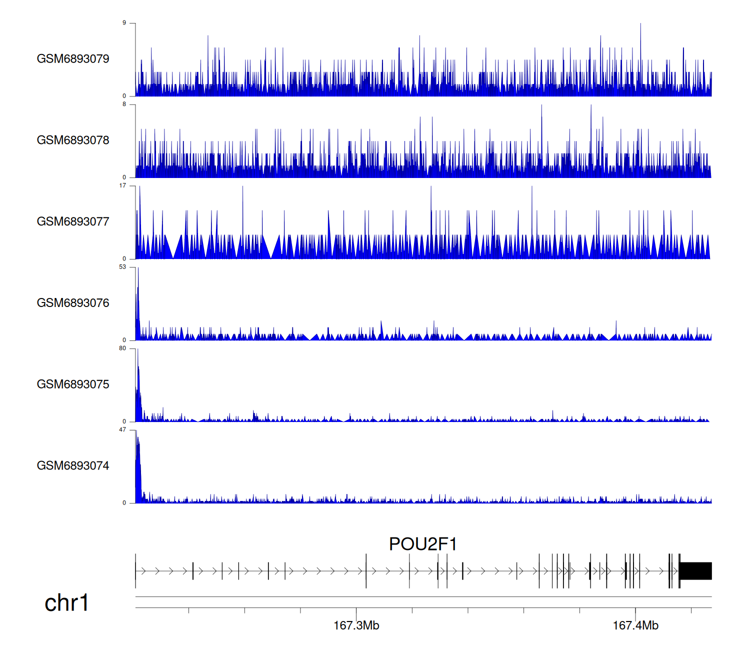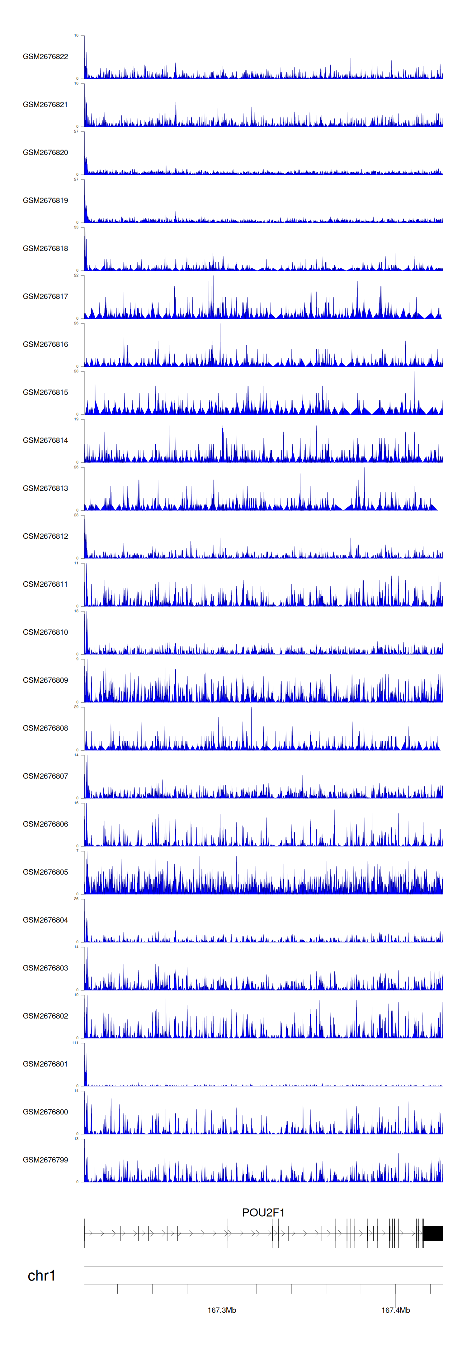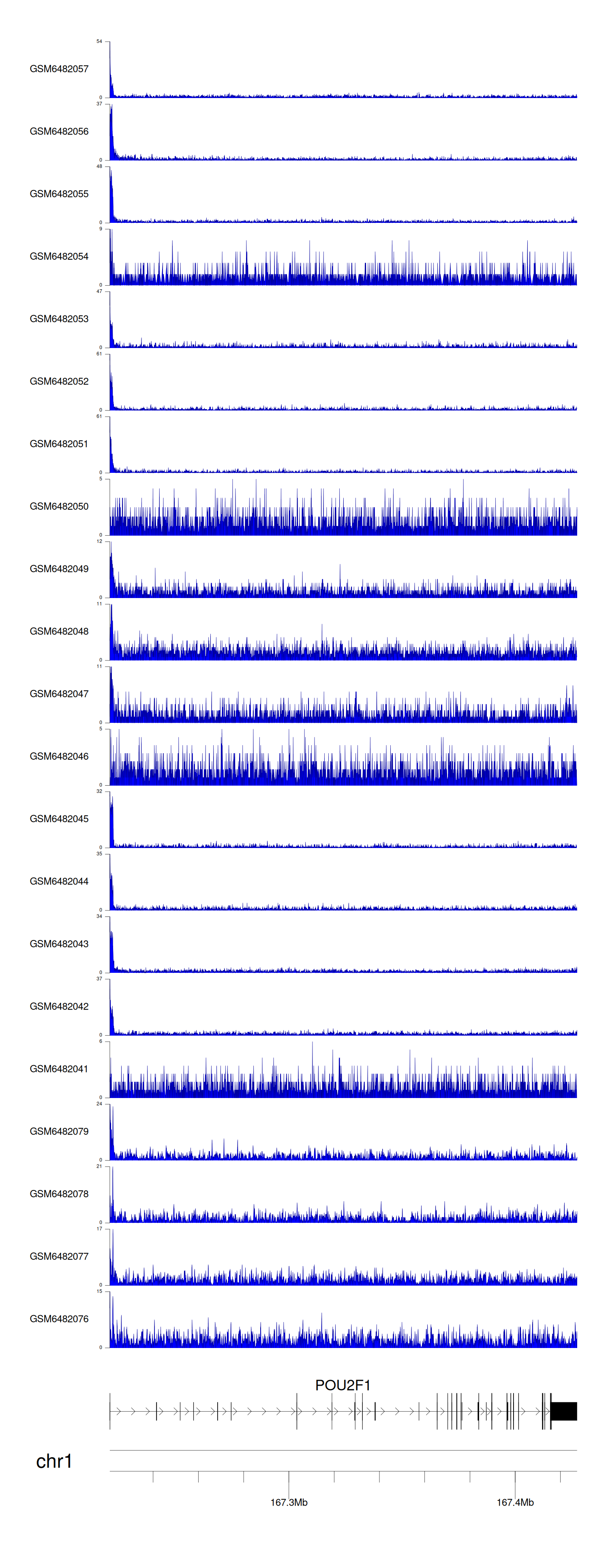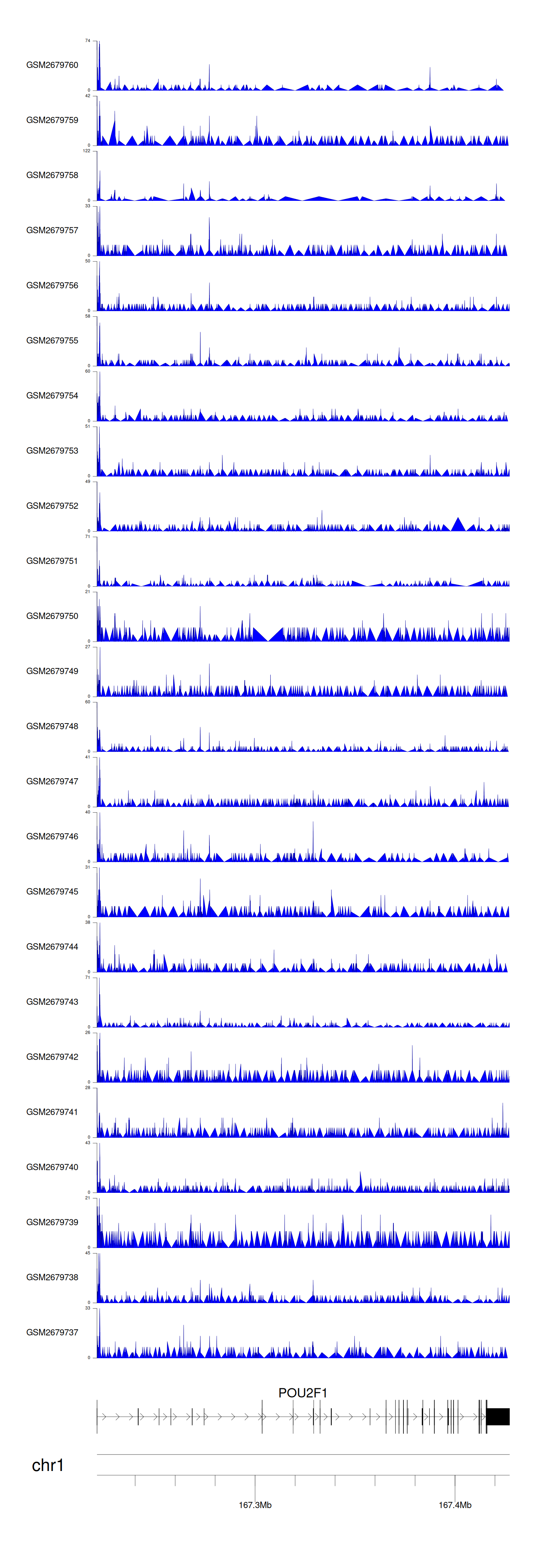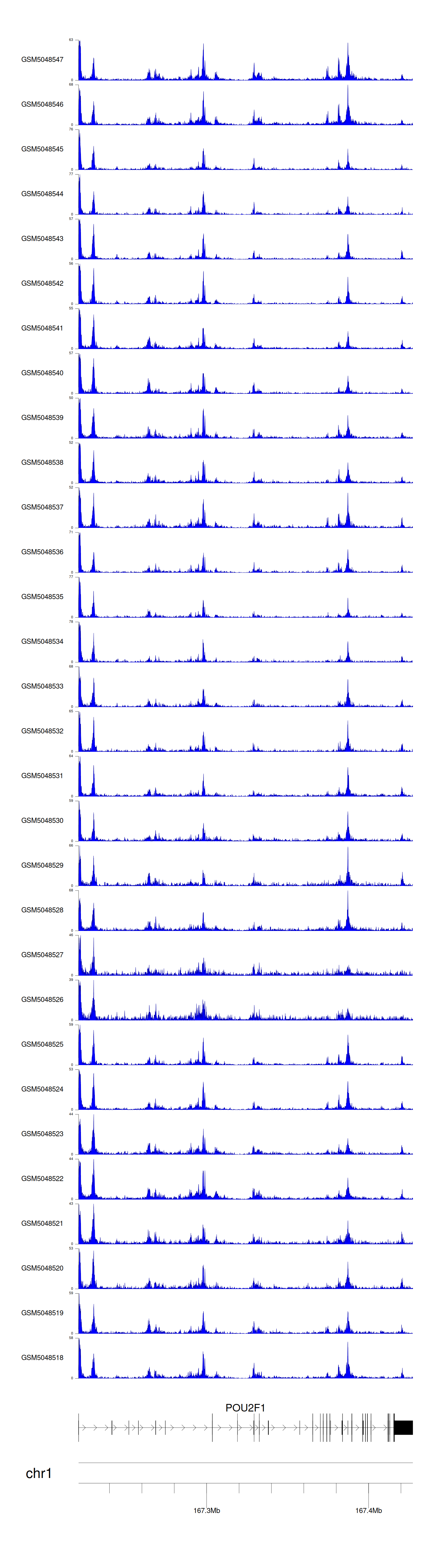 > Dataset: GSE165703 - POU2F1 peak across samples