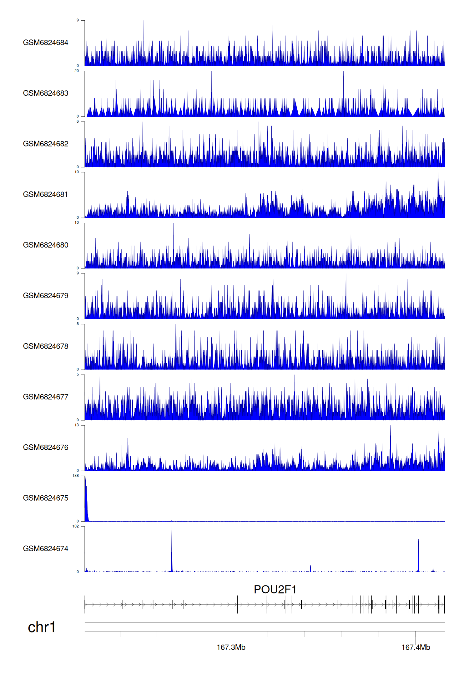 > Dataset: GSE221688 - POU2F1 peak across samples
