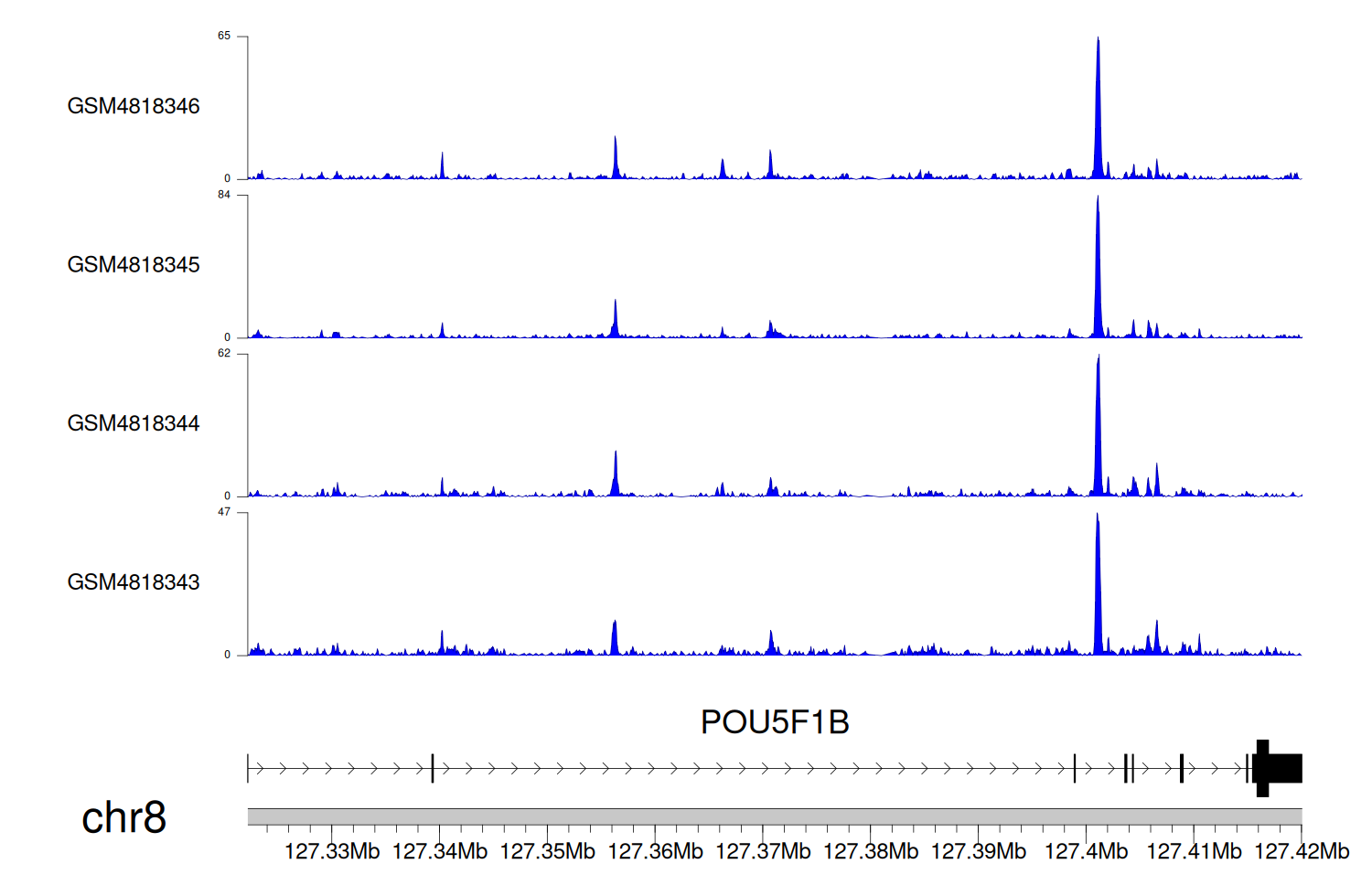 > Dataset: GSE131257 - POU5F1B peak across samples
