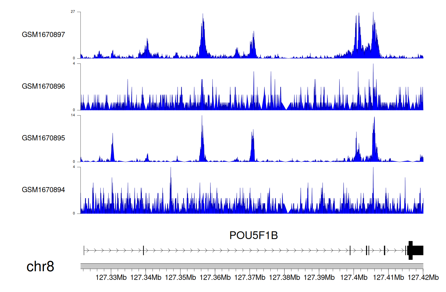 > Dataset: GSE68402 - POU5F1B peak across samples