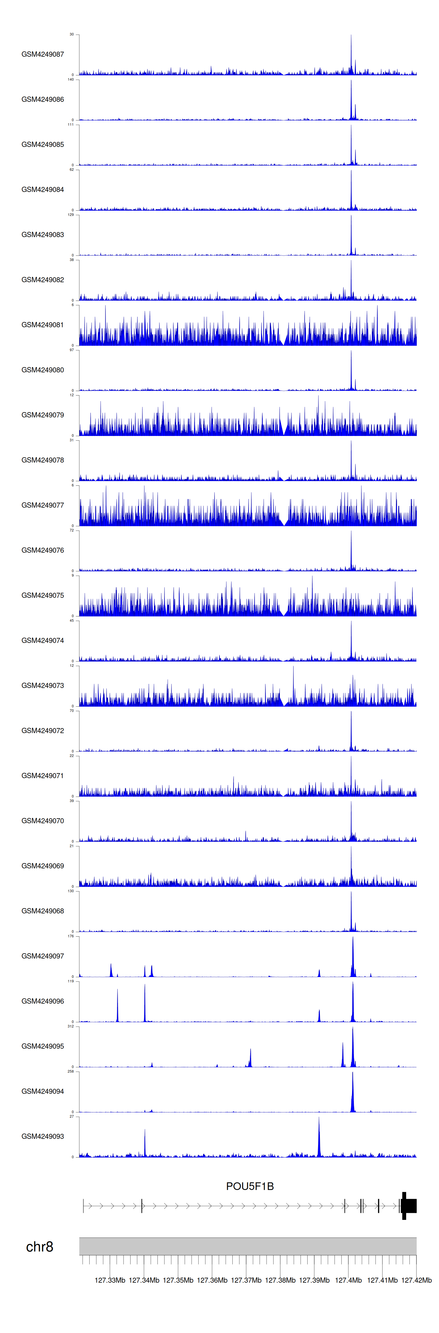 > Dataset: GSE143026 - POU5F1B peak across samples