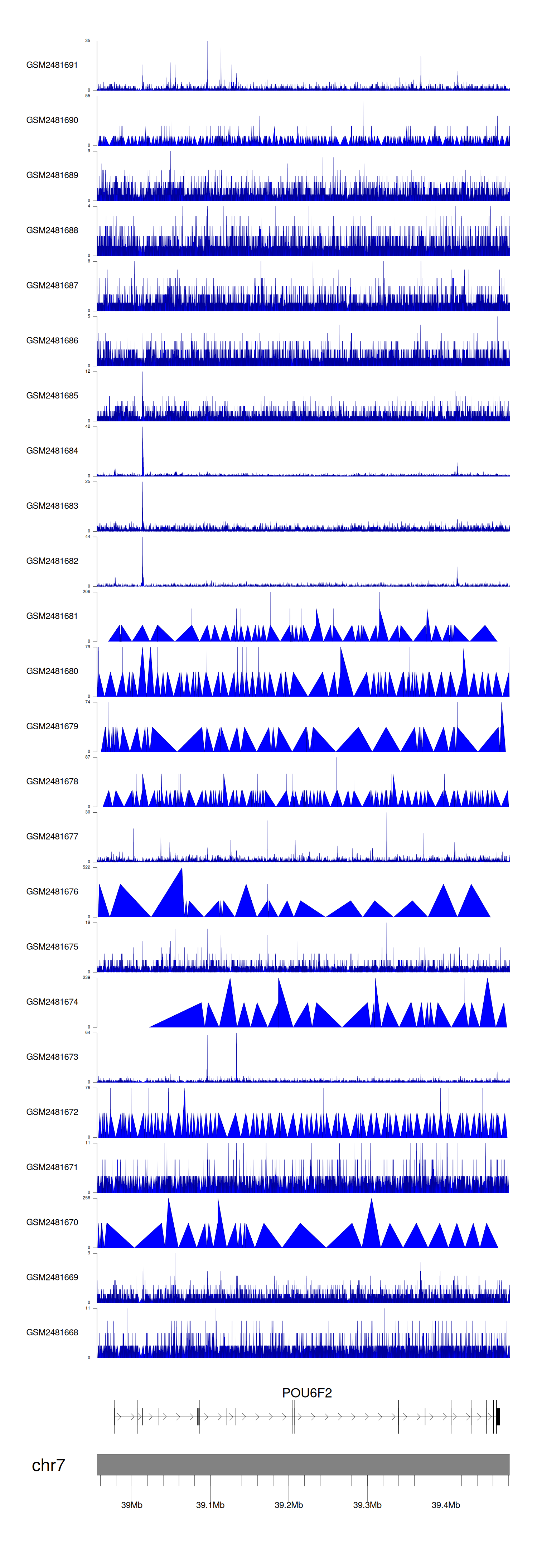 > Dataset: GSE94732 - POU6F2 peak across samples