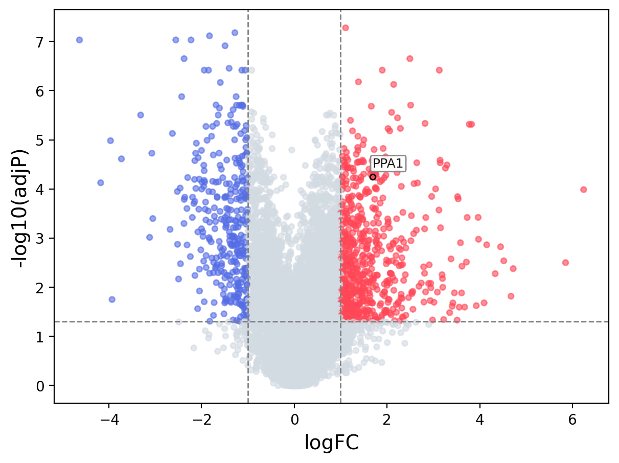 When the query gene is differentially changed in the dataset, a volcano/bar plot will be displayed.