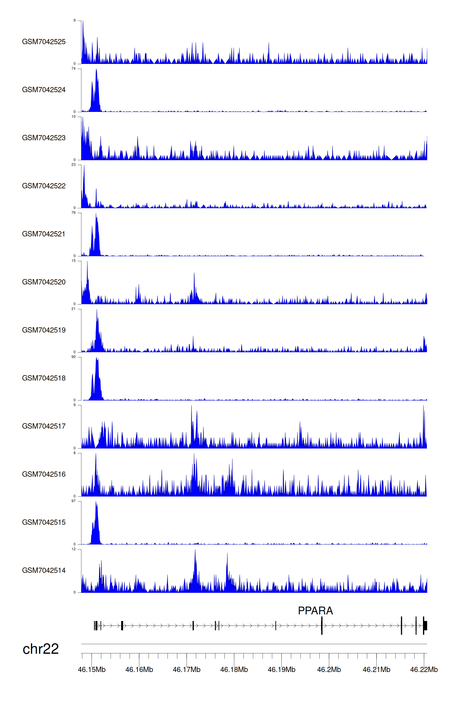Peroxisome proliferators include hypolipidemic drugs, herbicides, leukotriene antagonists, and plasticizers; this term arises because they induce an increase in the size and number of peroxisomes. Peroxisomes are subcellular organelles found in plants and animals that contain enzymes for respiration and for cholesterol and lipid metabolism. The action of peroxisome proliferators is thought to be mediated via specific receptors, called PPARs, which belong to the steroid hormone receptor superfamily. PPARs affect the expression of target genes involved in cell proliferation, cell differentiation and in immune and inflammation responses. Three closely related subtypes (alpha, beta/delta, and gamma) have been identified. This gene encodes the subtype PPAR-alpha, which is a nuclear transcription factor. Multiple alternatively spliced transcript variants have been described for this gene, although the full-length nature of only two has been determined. [provided by RefSeq, Jul 2008] |