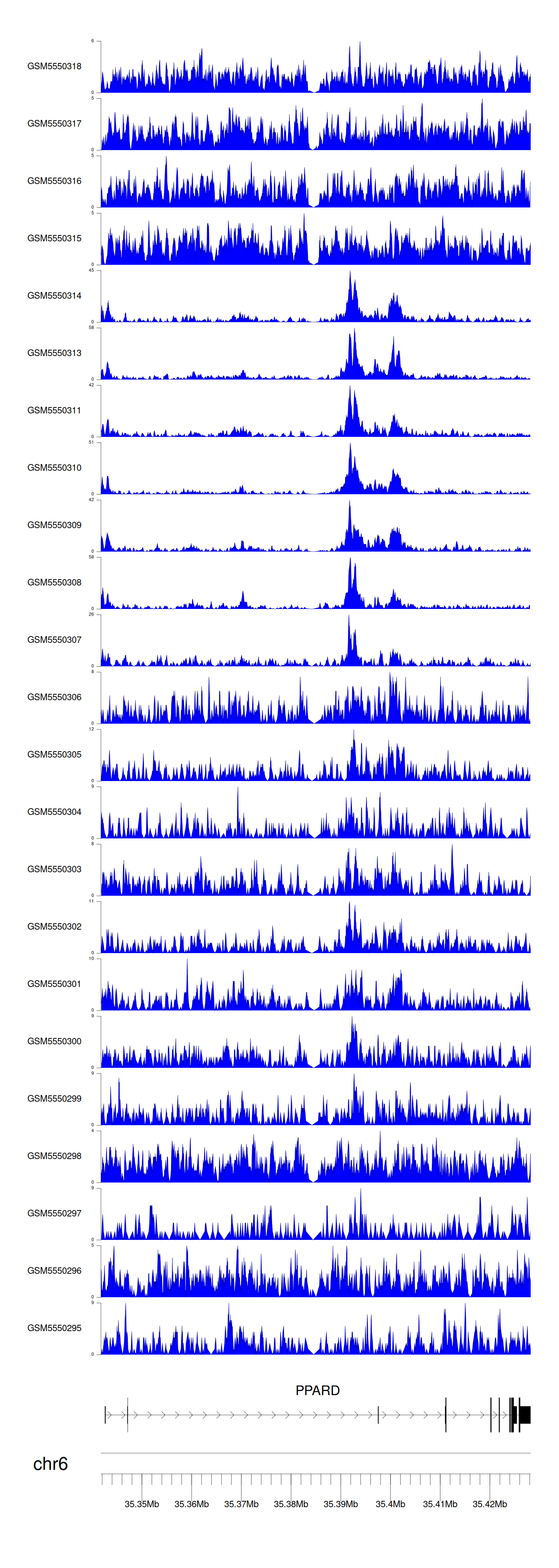 > Dataset: GSE183048 - PPARD peak across samples