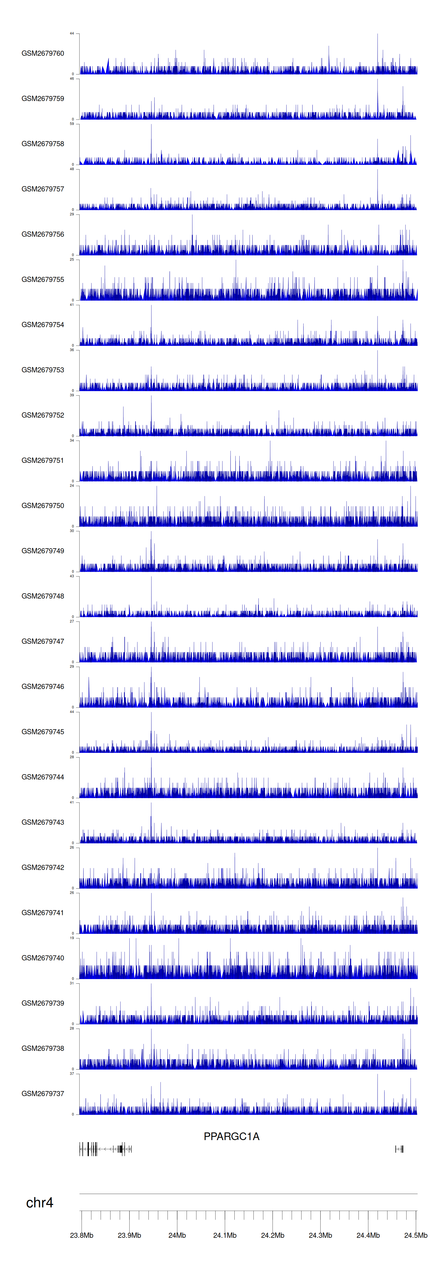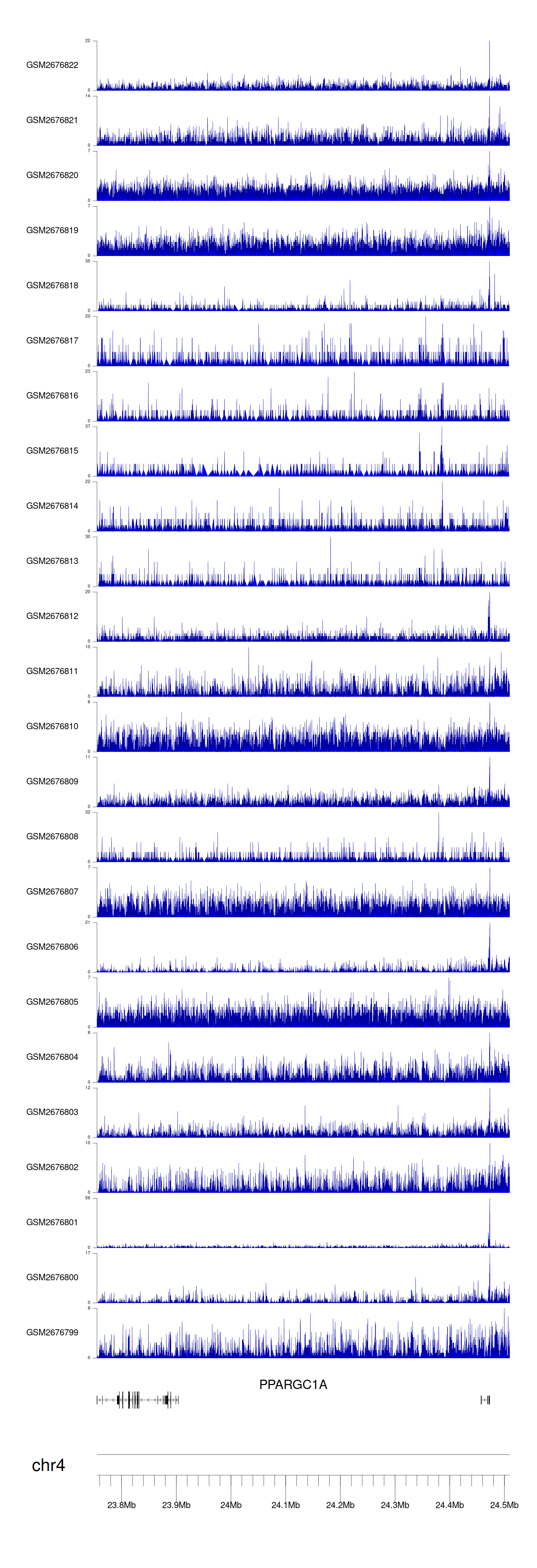 > Dataset: GSE100376 - PPARGC1A peak across samples