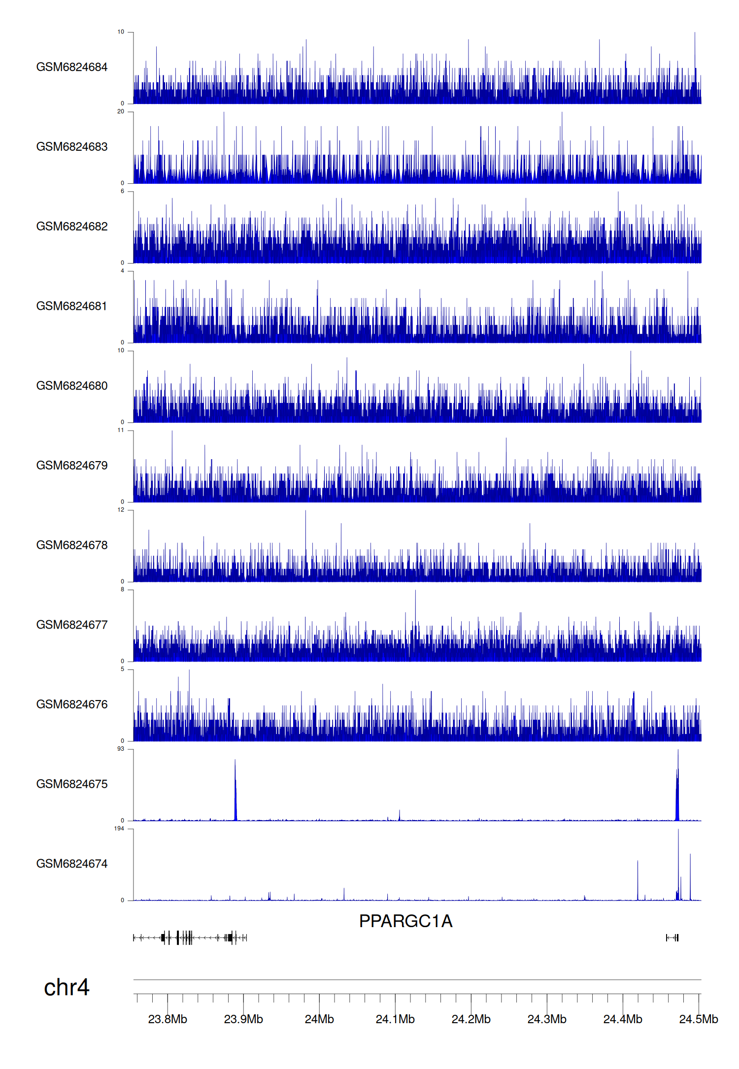 > Dataset: GSE144329 - PPARGC1A peak across samples
