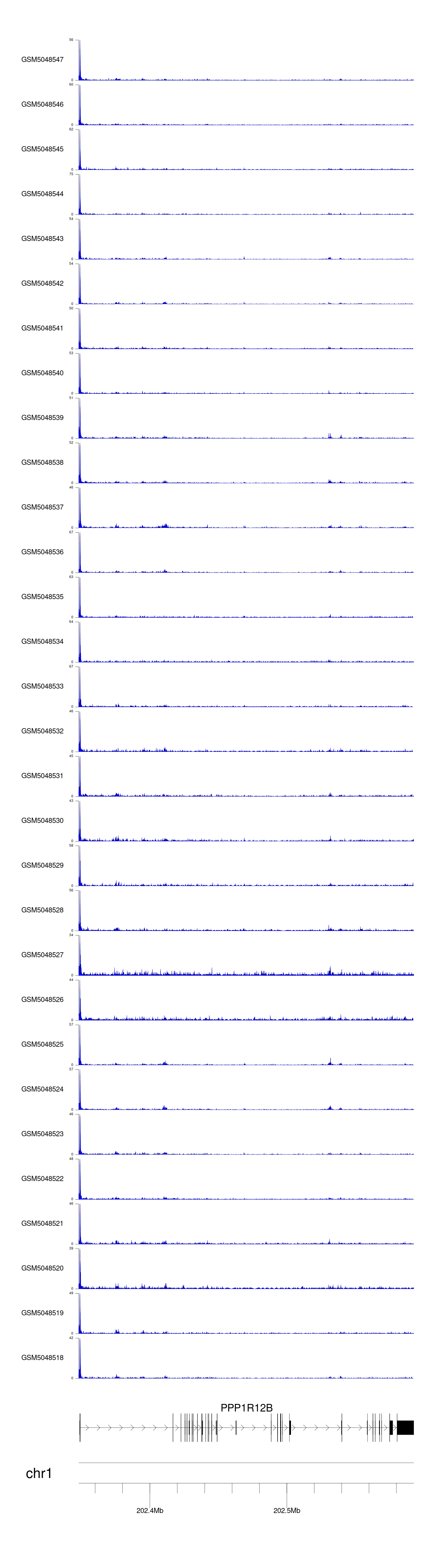 > Dataset: GSE30738 - PPP1R12B peak across samples