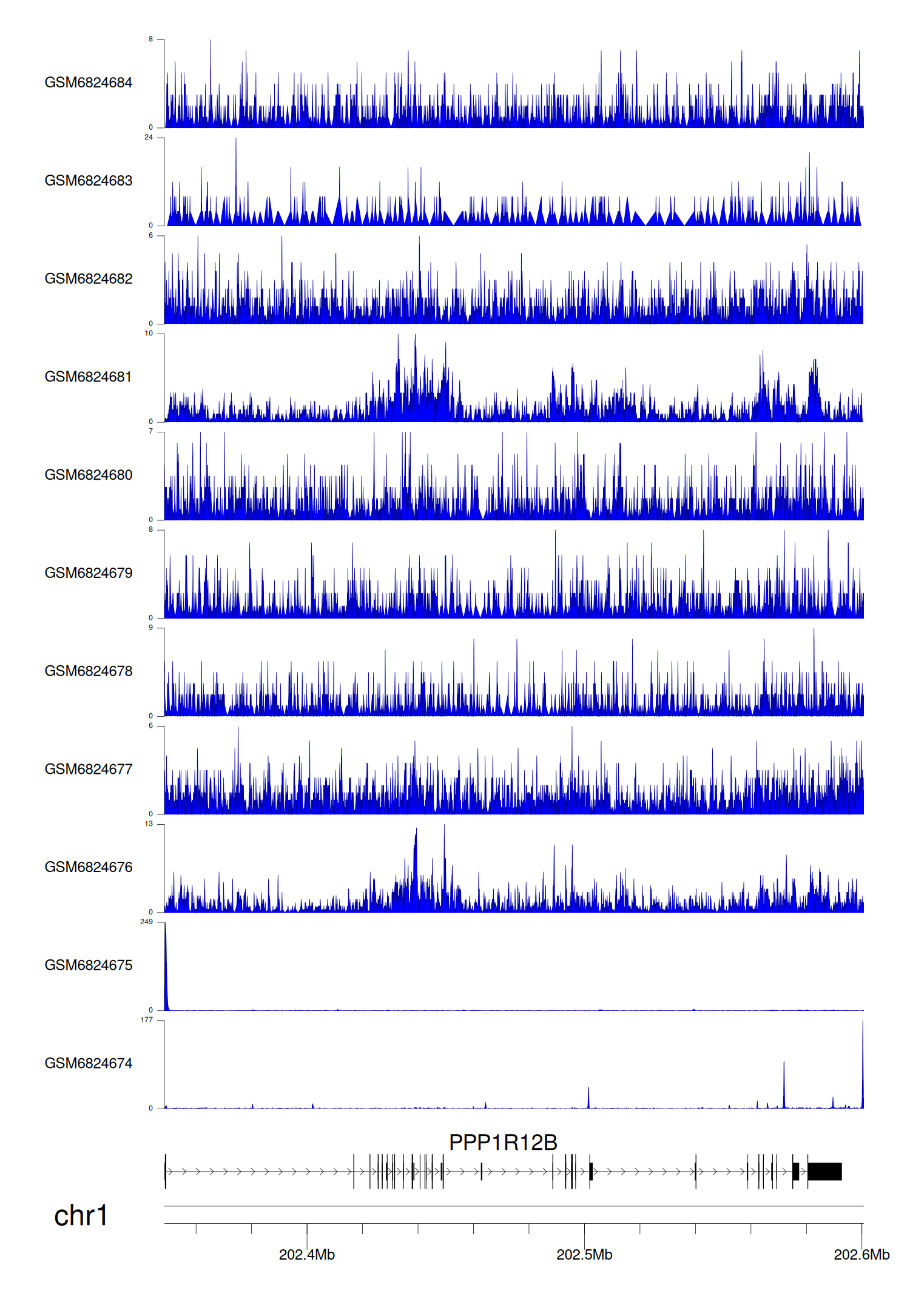 > Dataset: GSE165703 - PPP1R12B peak across samples