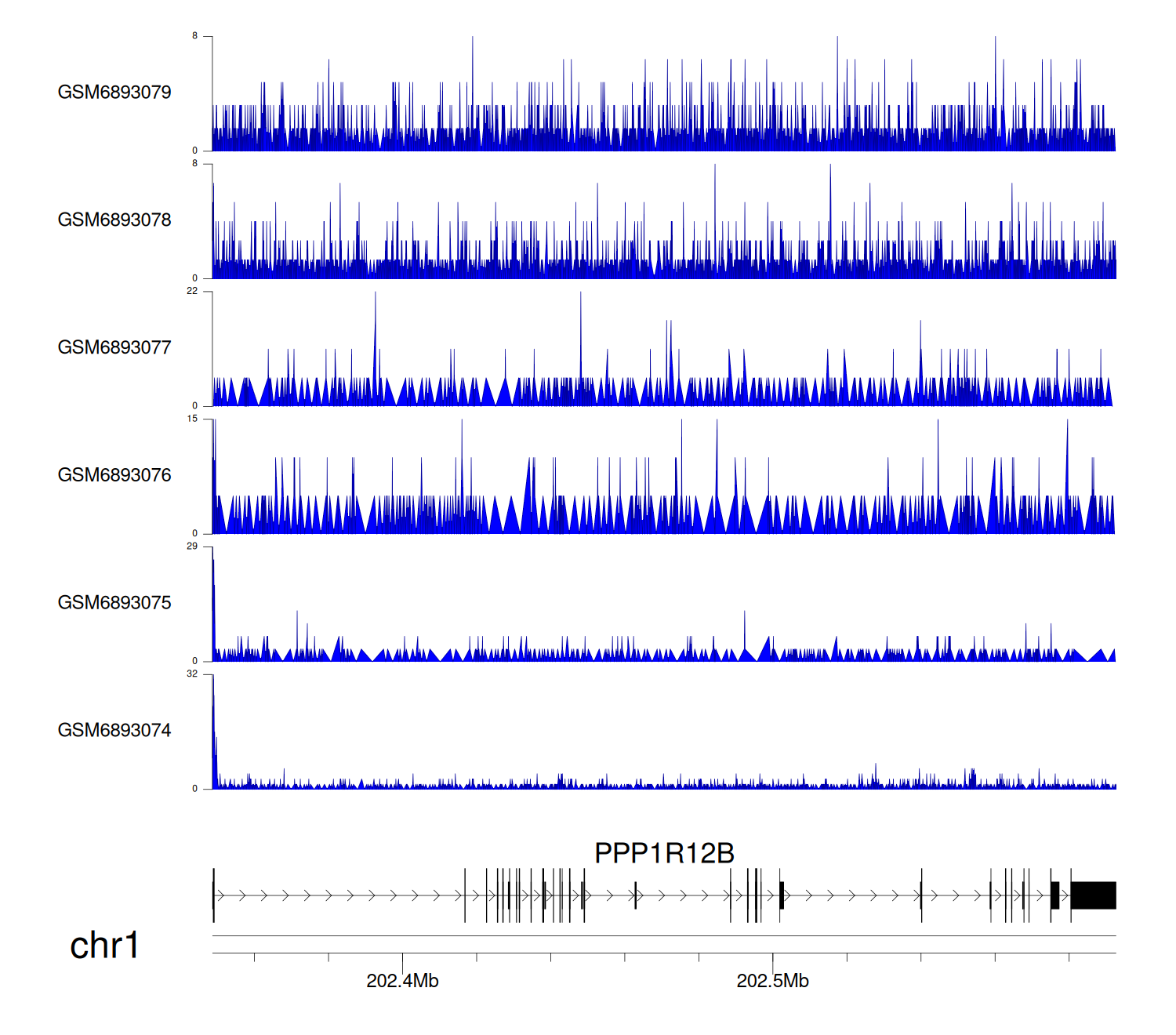 > Dataset: GSE211651 - PPP1R12B peak across samples