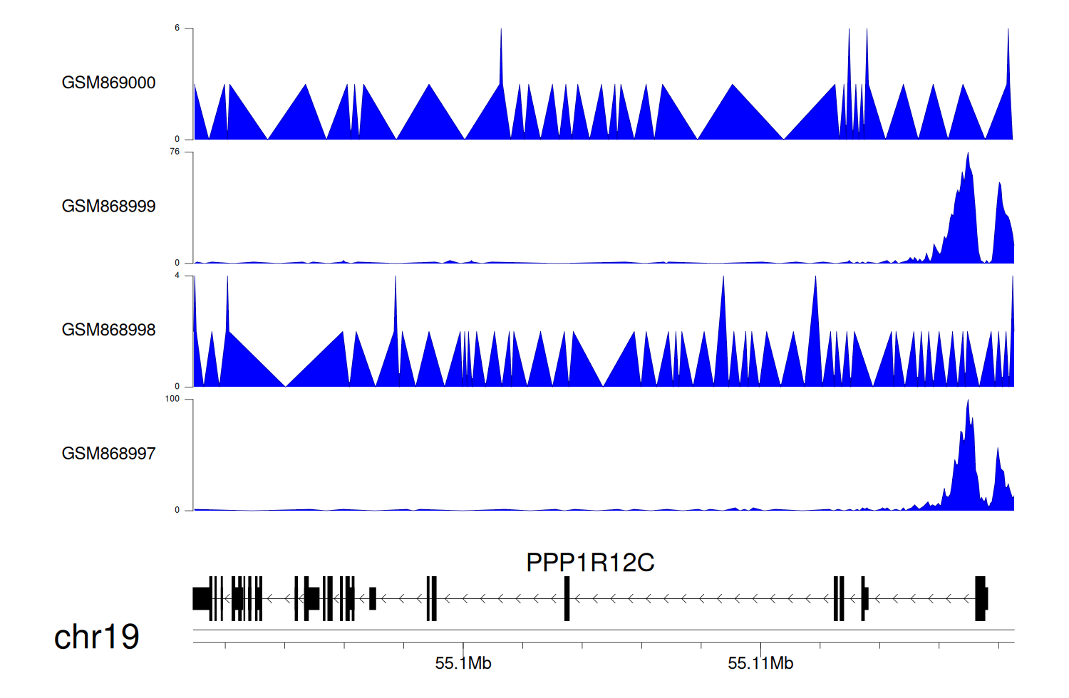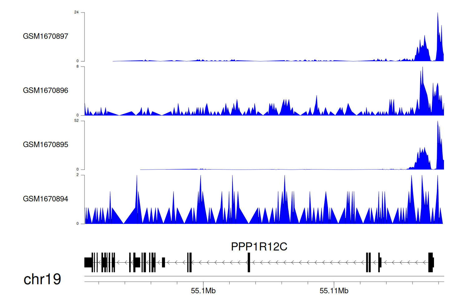 > Dataset: GSE68402 - PPP1R12C peak across samples