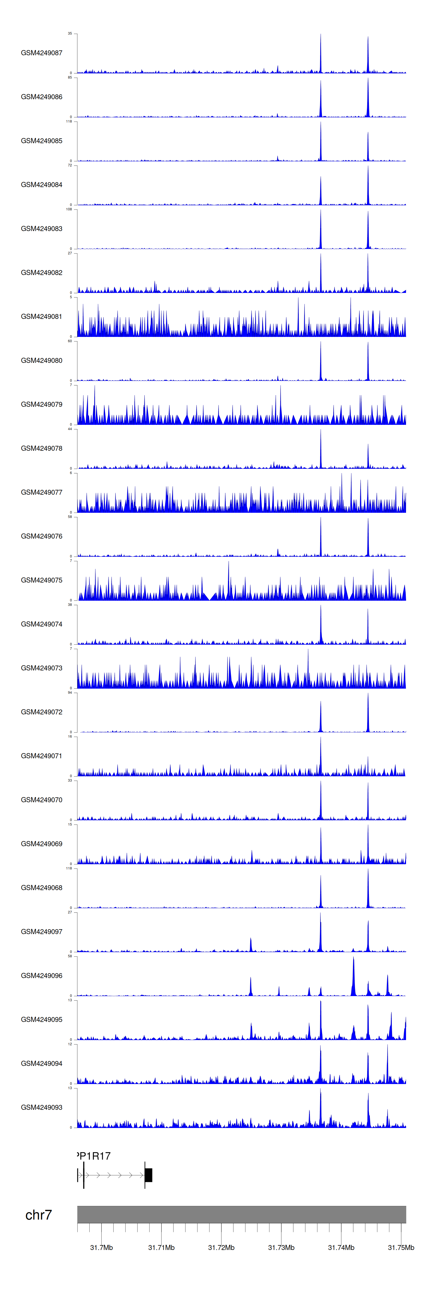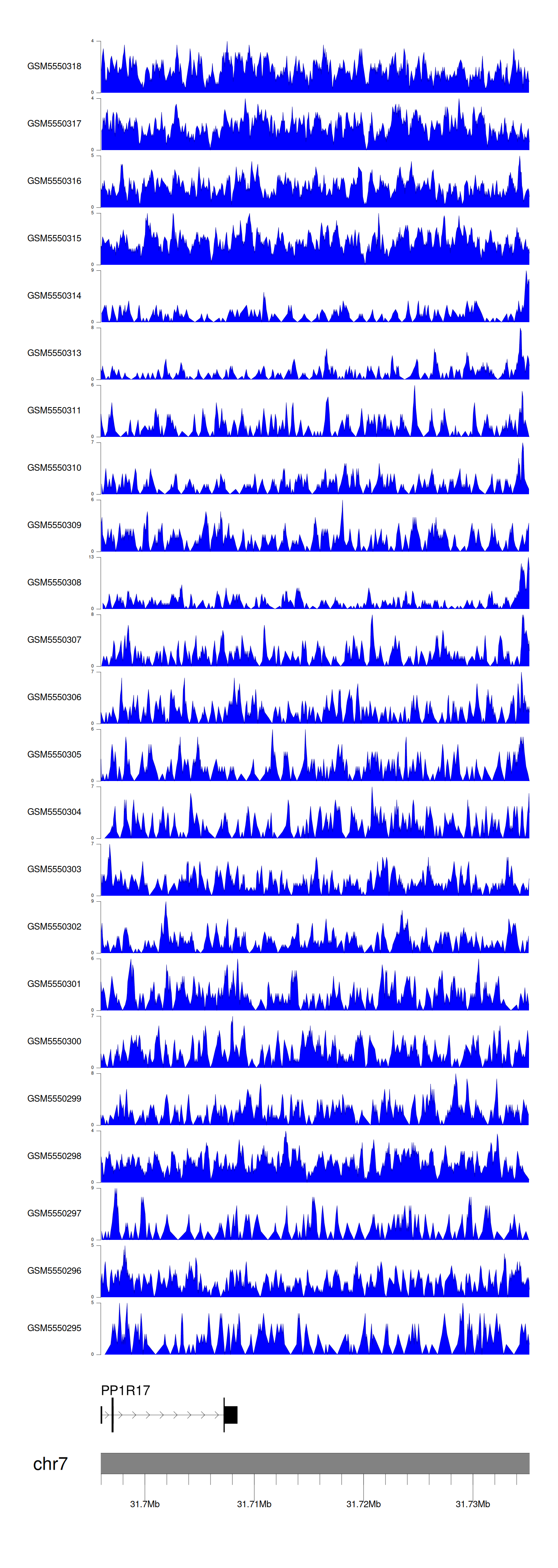 > Dataset: GSE143026 - PPP1R17 peak across samples