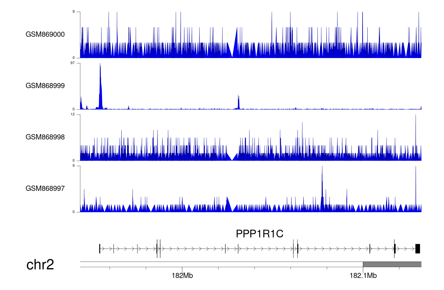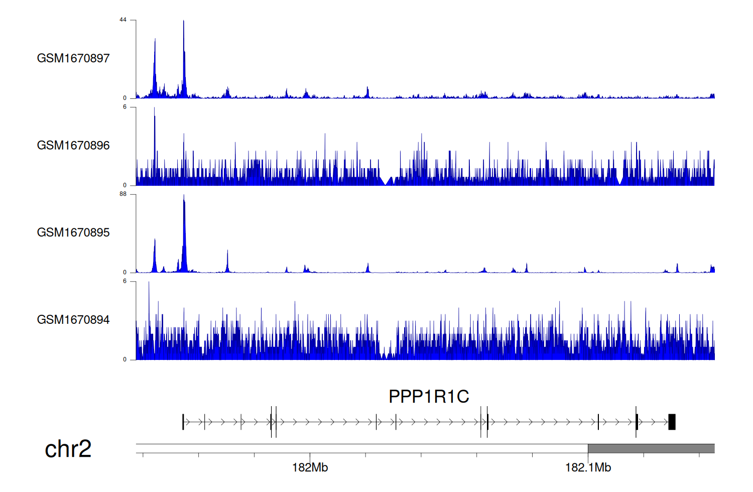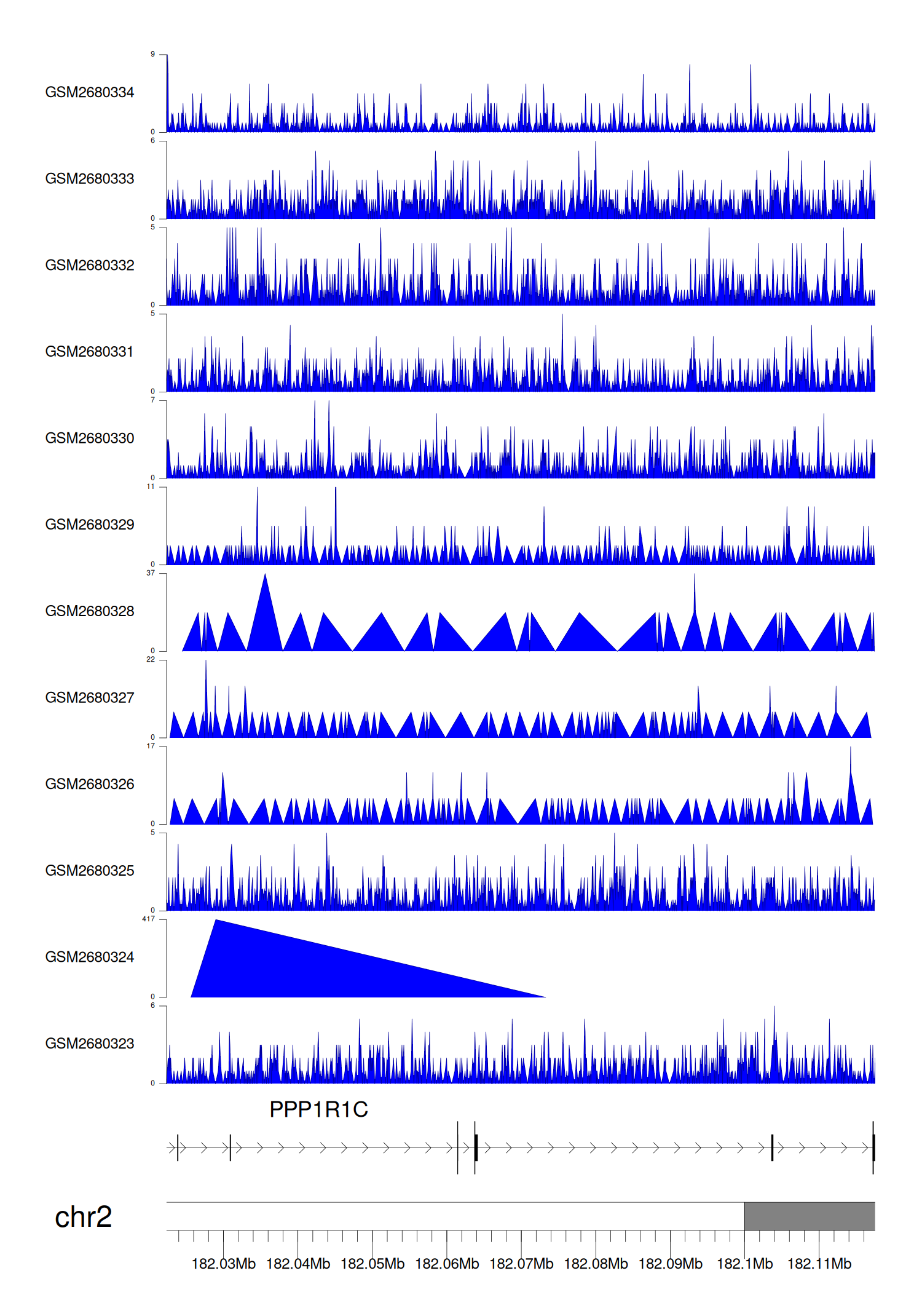 > Dataset: GSE100400 - PPP1R1C peak across samples