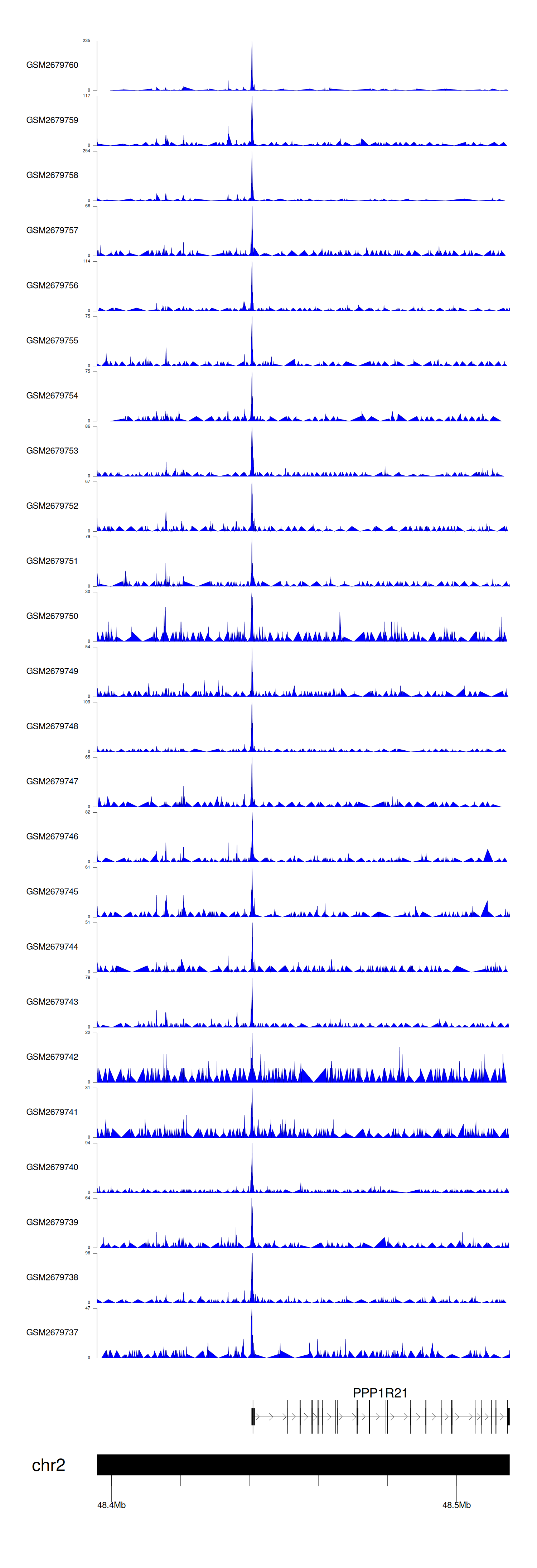 > Dataset: GSE100376 - PPP1R21 peak across samples