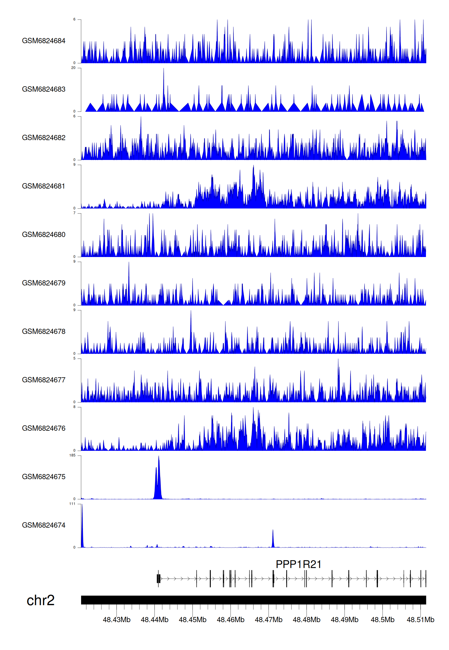 > Dataset: GSE165703 - PPP1R21 peak across samples