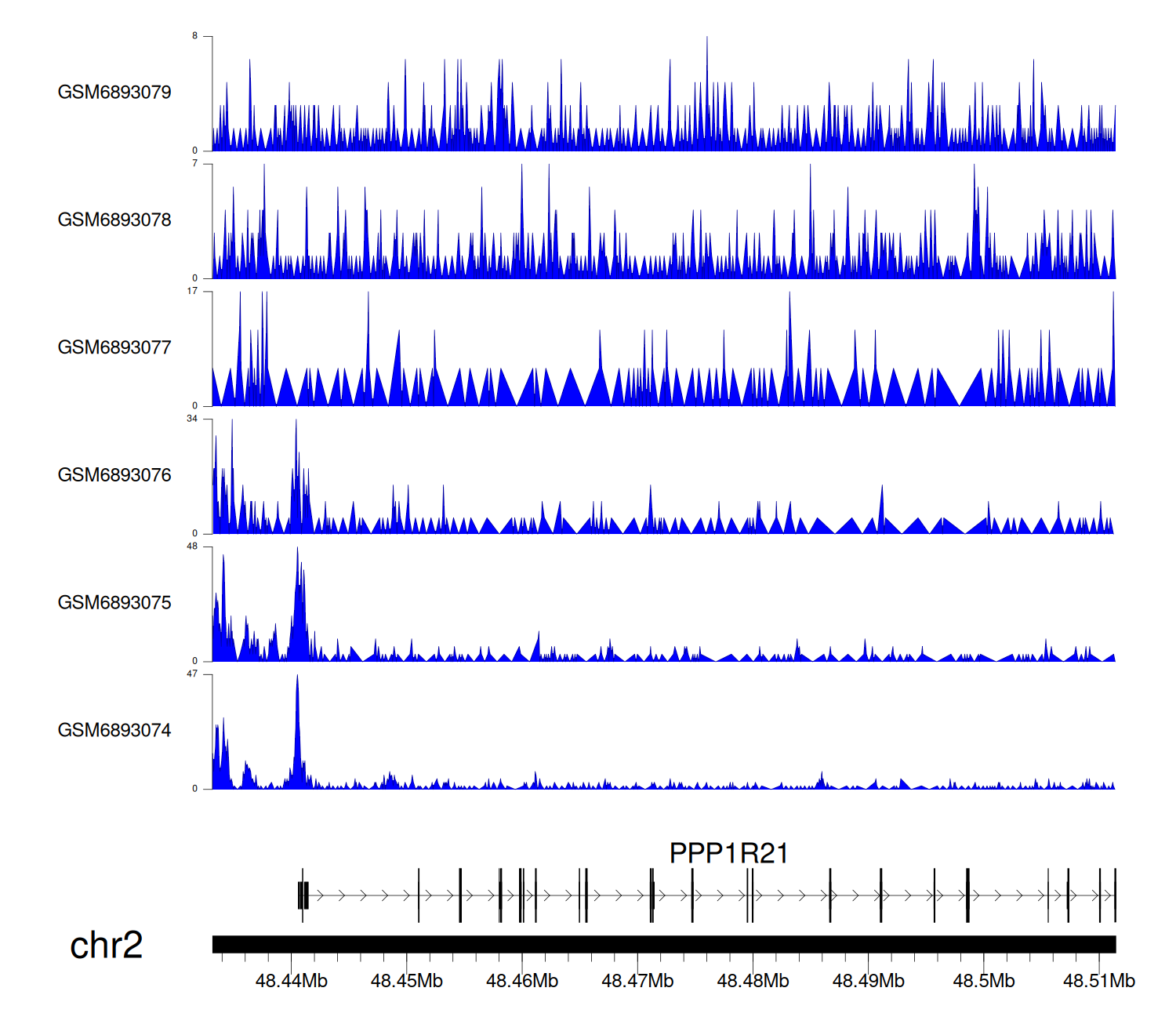 > Dataset: GSE211651 - PPP1R21 peak across samples