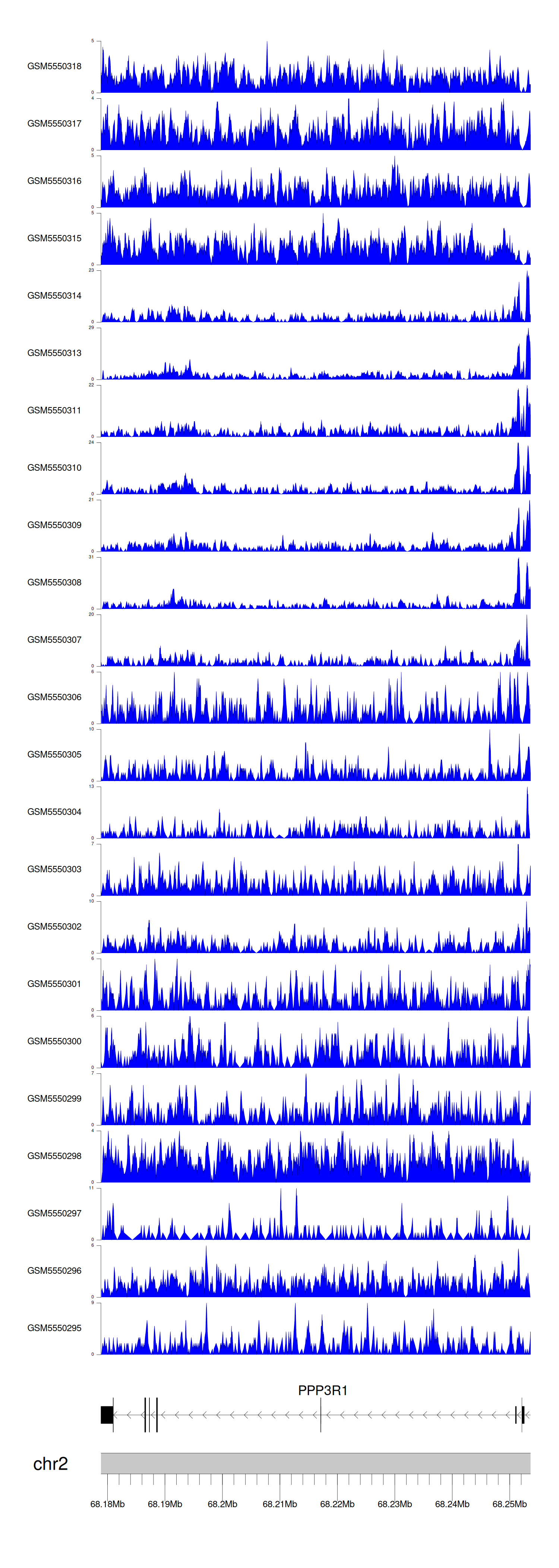 > Dataset: GSE183048 - PPP3R1 peak across samples